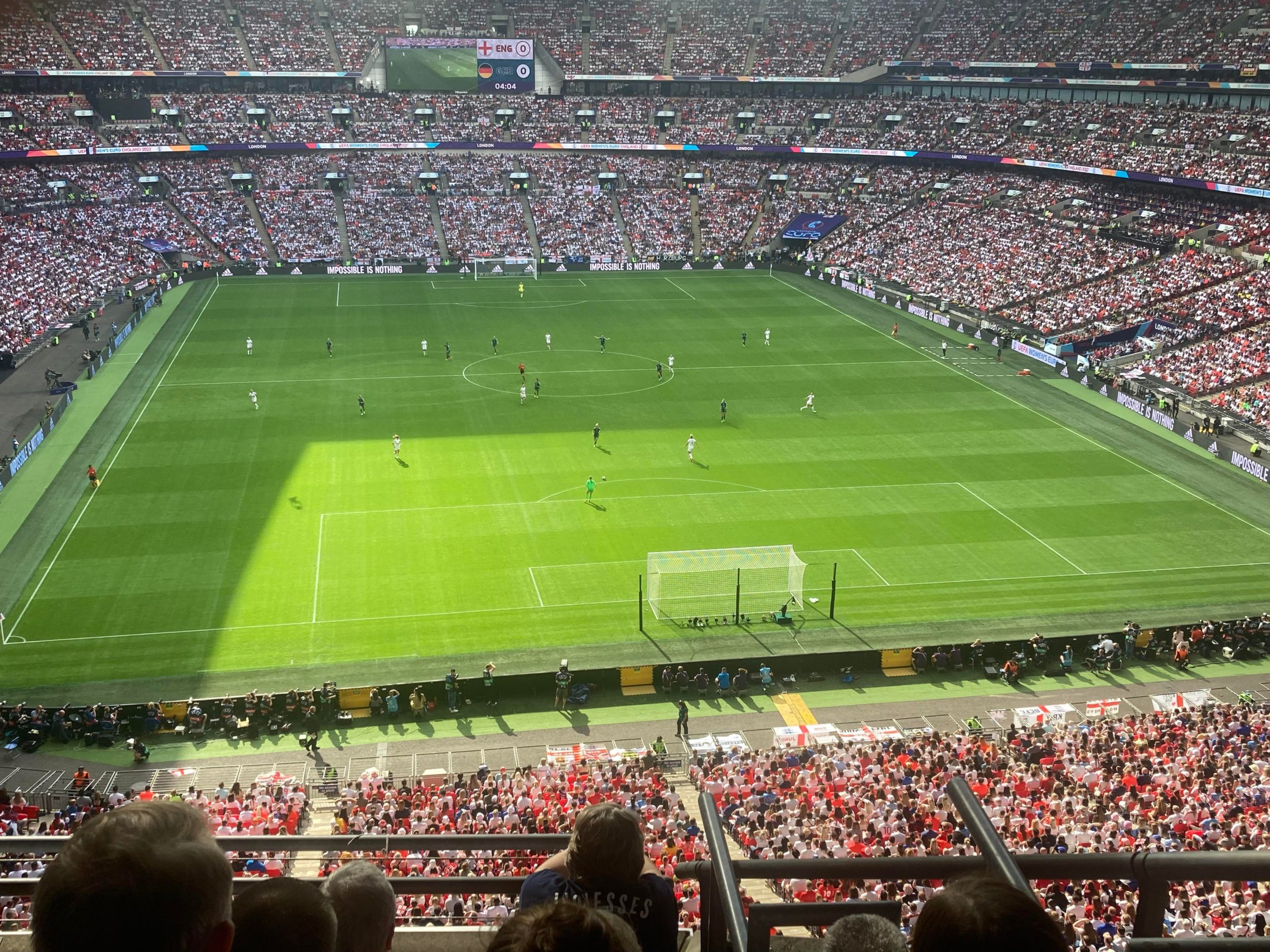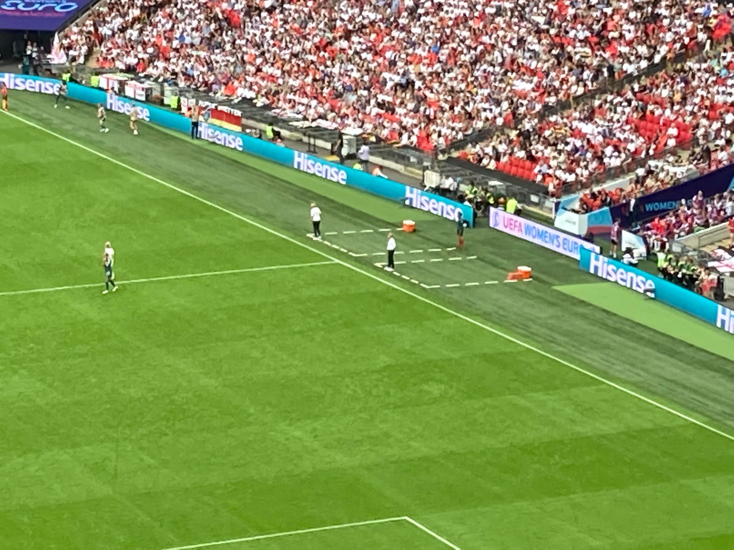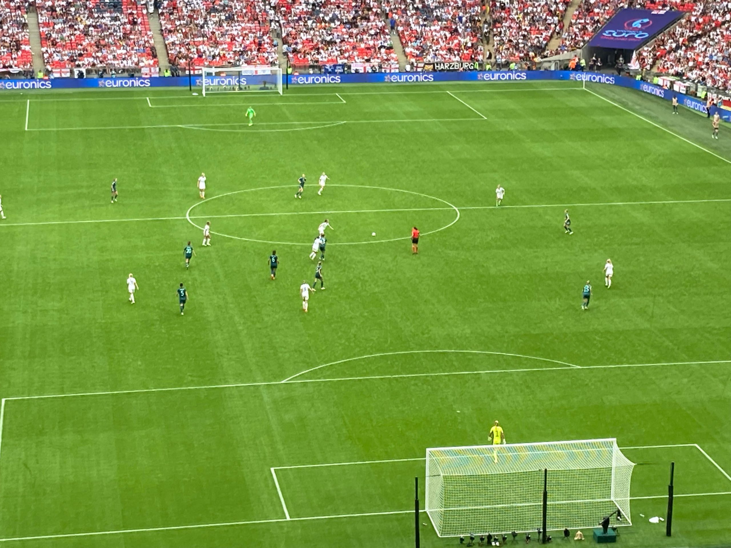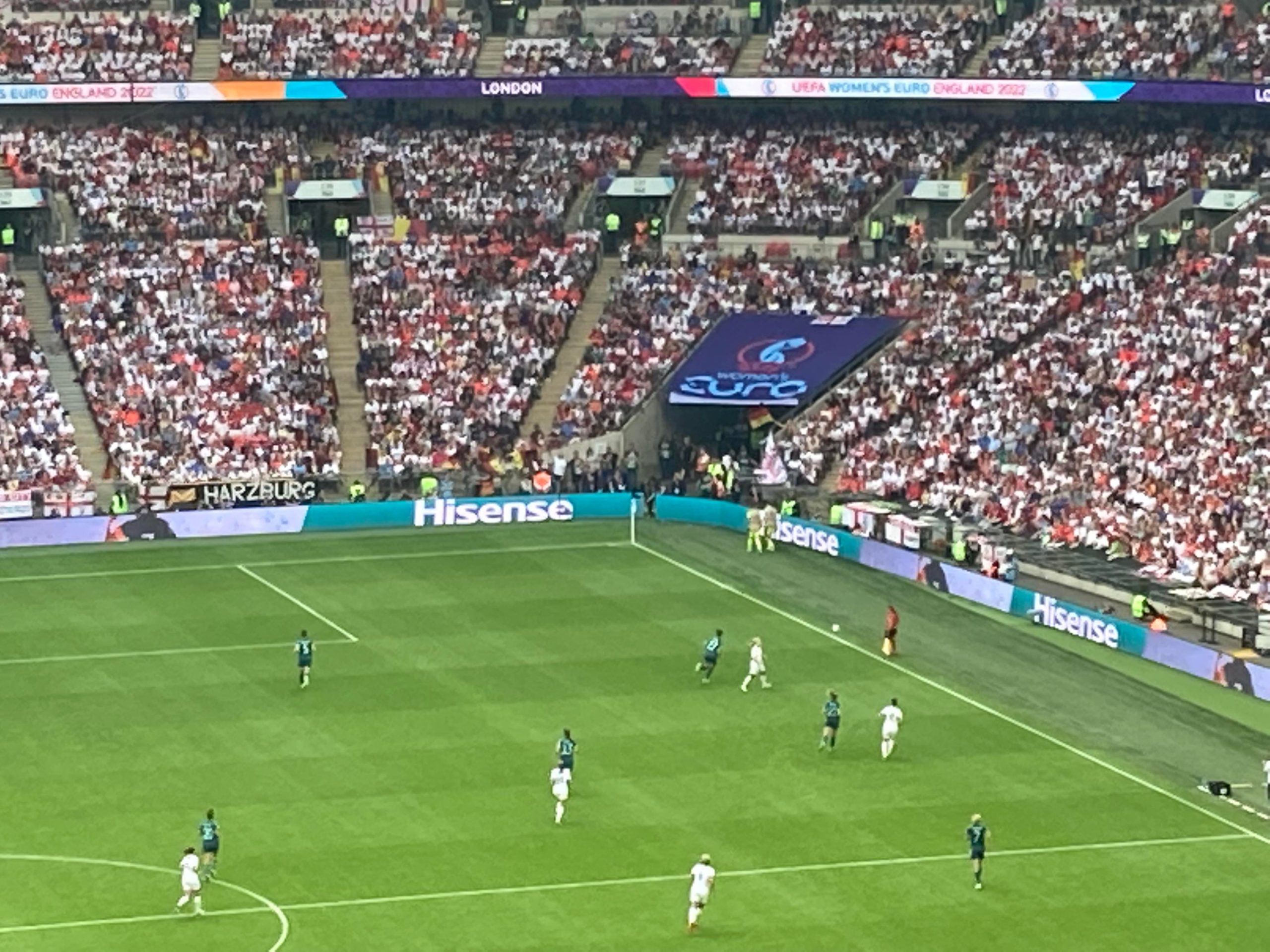 The warm-ups are done and now we are treated to a special show from Becky Hill before kick off! And now it’s time for the main event!! Out come the teams… I’ve said it a few times “to a wall of noise!” But today it’s a wall of noise on steroids! Now for the national anthems… “GOD SAVE OUR QUEEN!” COME ON ENGLAND!!