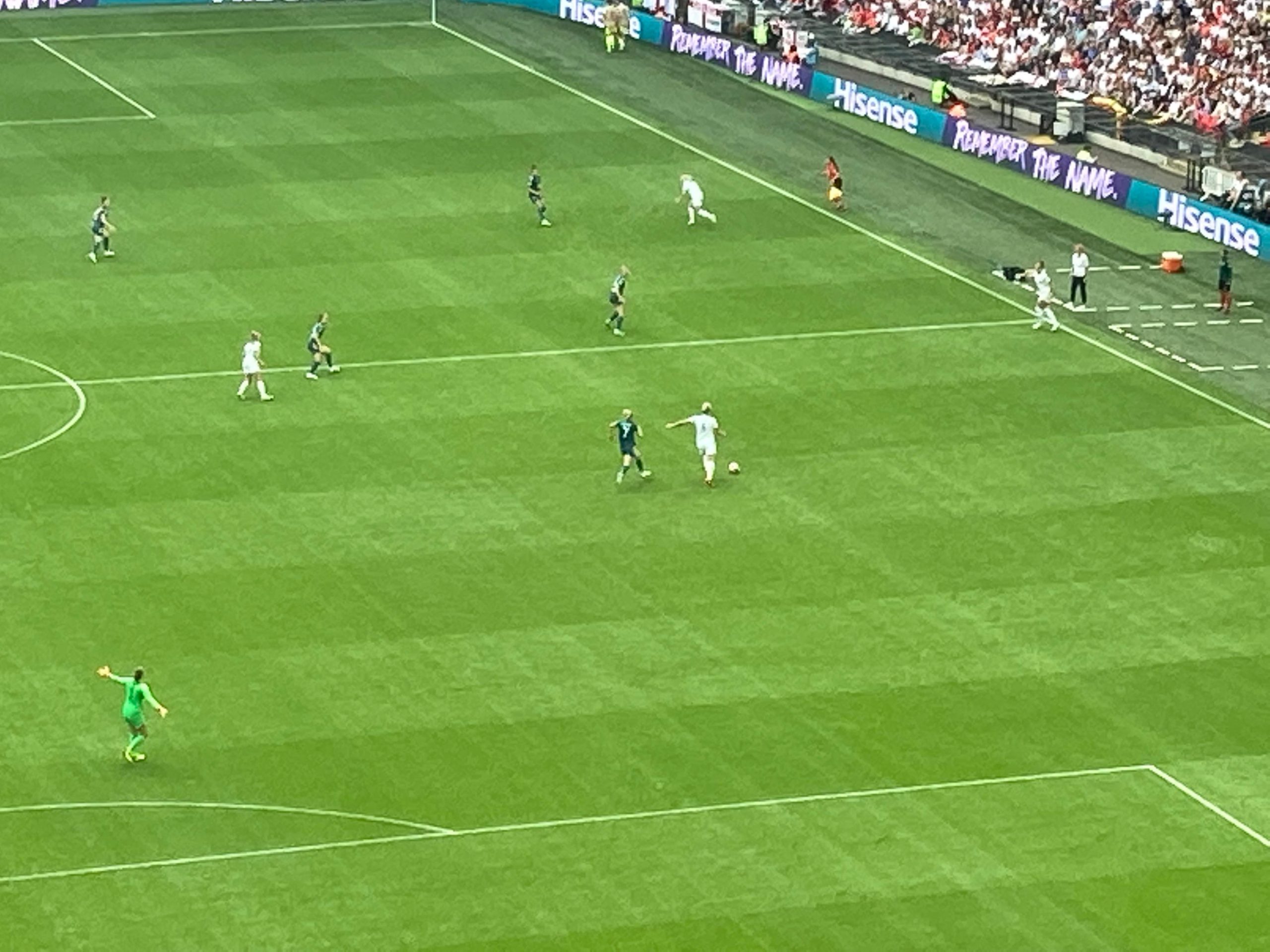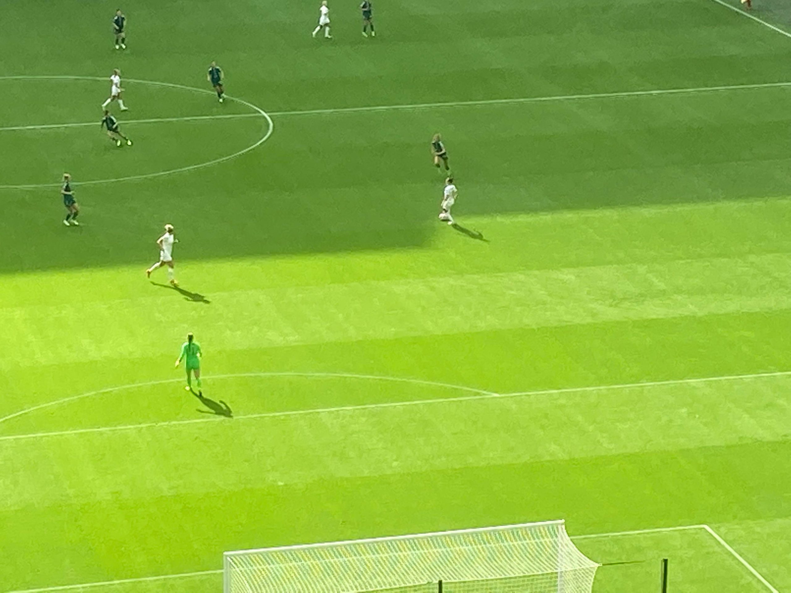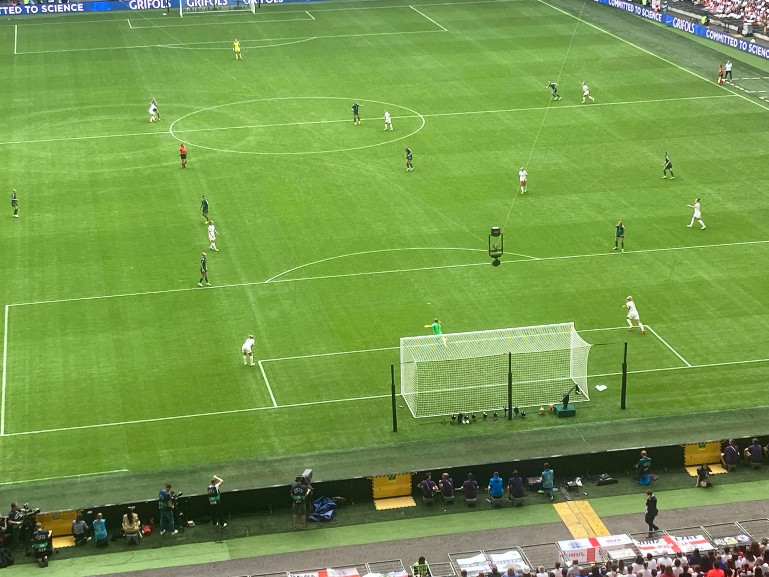 “Da da dadada dadadada England!” 18th minute and England have a corner, in it comes… Lucy Bronze with the header… Straight at the keeper… She couldn’t repeat her heroics at Bramall Lane this time around.