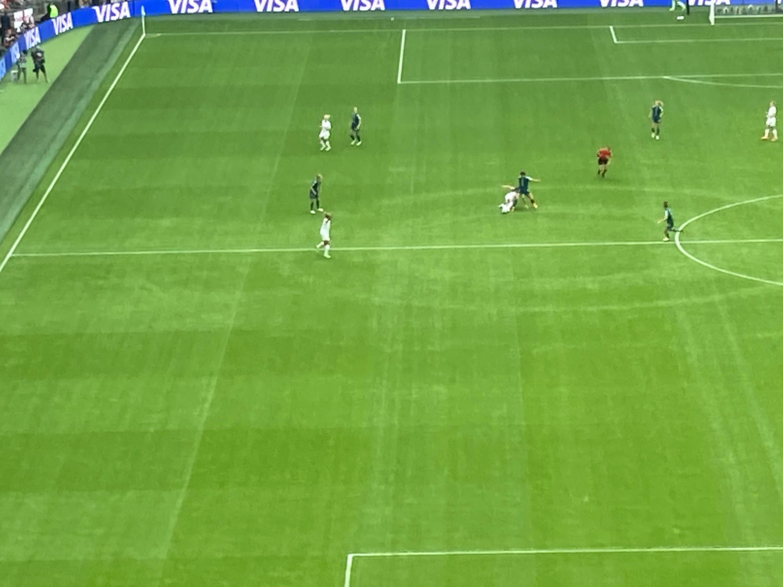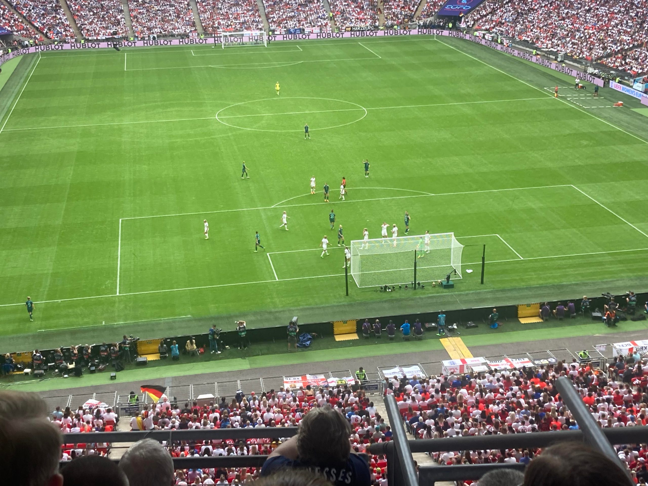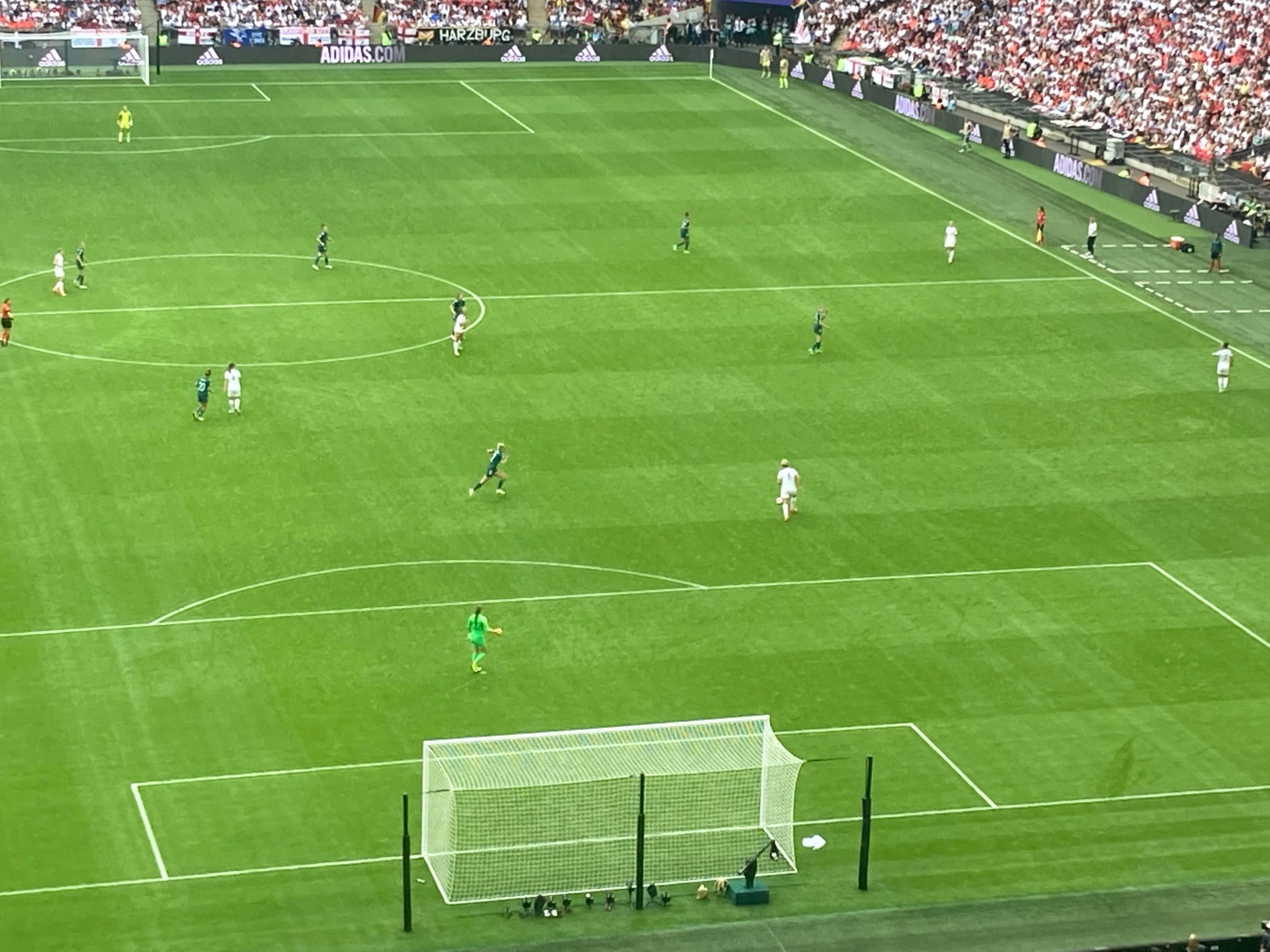 2 minutes later and here come Germany again, some lovely play there from Germany and they get it out left, it’s played across to Lina MAGULL! Ooooooh! Just wide! So close for Germany! heart in your mouth moment for us in the stands…