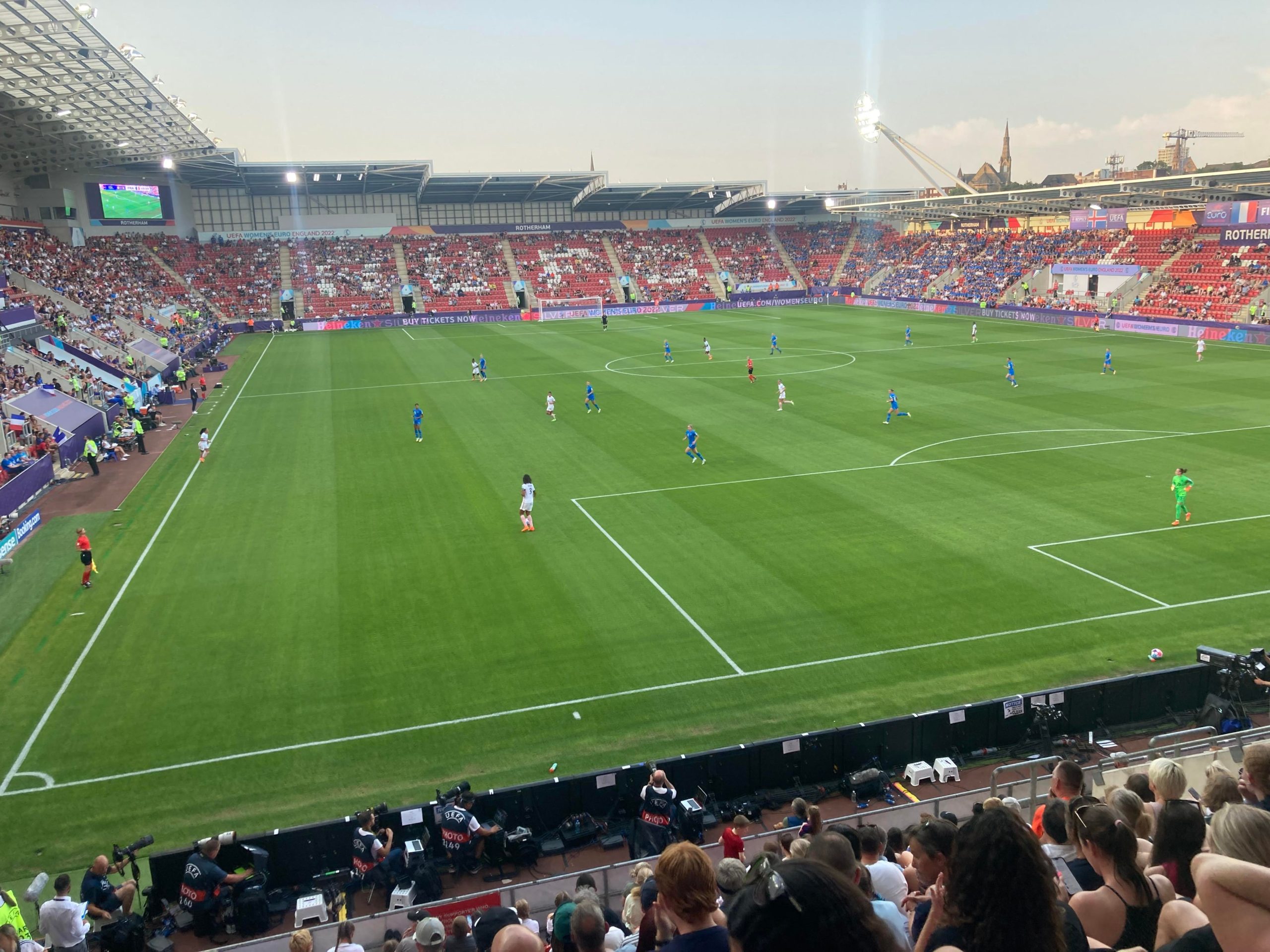 New York Stadium, the setting for this UEFA Women’s Euro tie between Iceland Women and France Women. France are already through to the Quarter Finals after winning 2 games out of 2 whereas Iceland are second in the group with 2 draws but Belgium and Italy can still qualify if they win and Iceland fail to win. A must win game for Iceland!