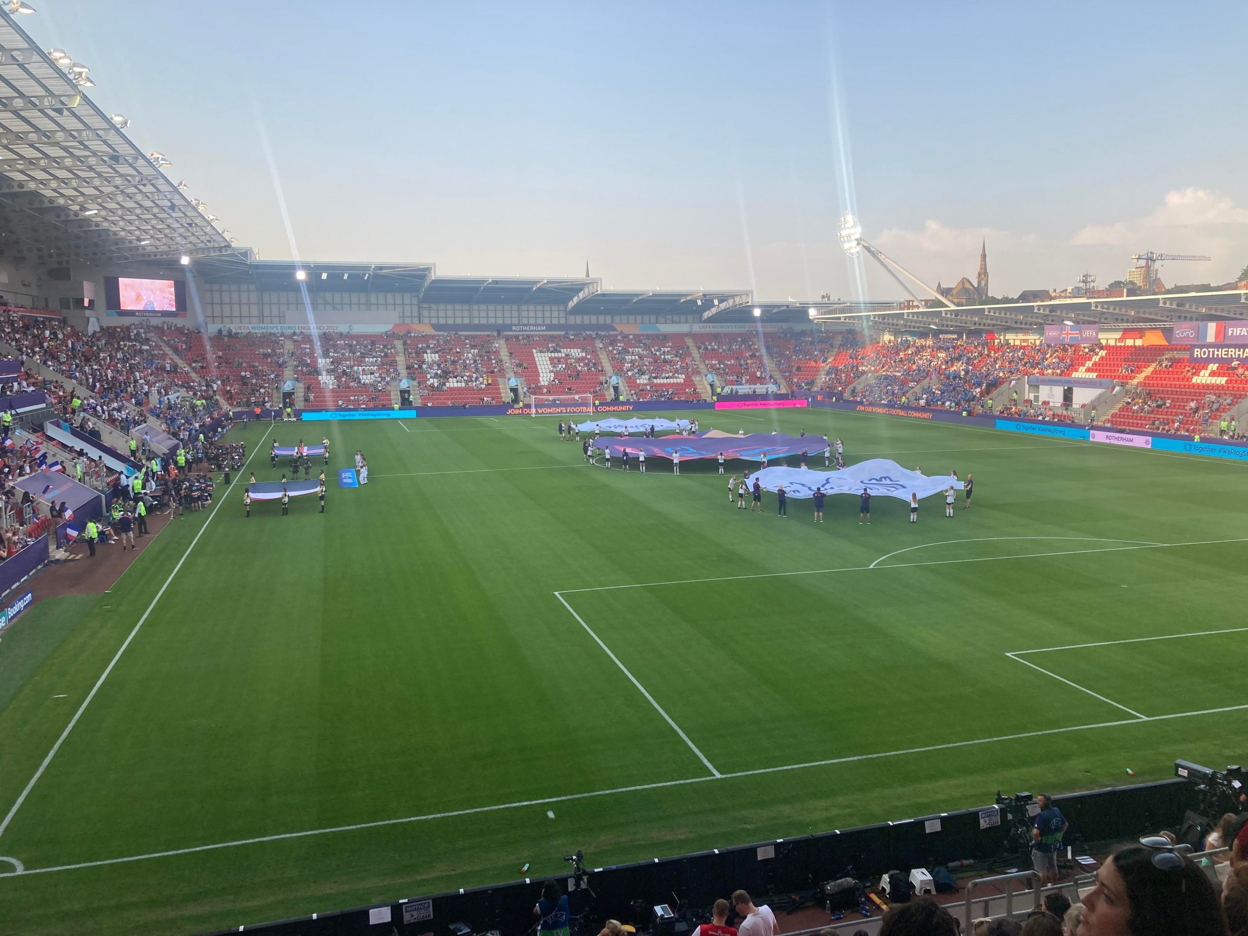 It’s certainly nice to see Rotherham being chosen to host games in this tournament I have to say which is bringing more to the town. Here I am at the ground and now the wait for Mr & Mrs Merry Miller which gives me time to look around the ground again at all the banners for the tournament.