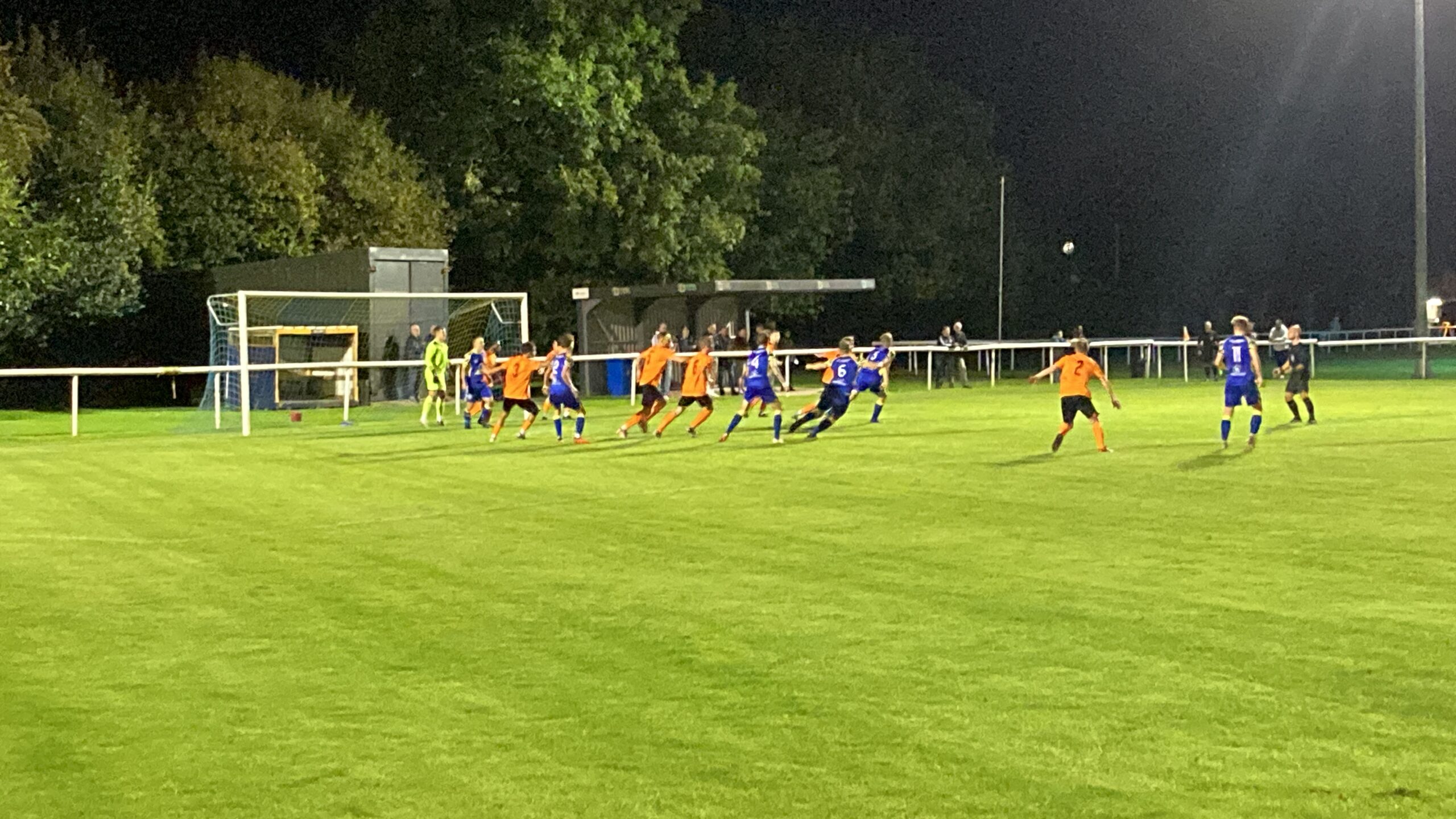 74th minute now and Uttoxeter have a corner, it’s played in… It comes back to the taker who gets past his man and he plays it across low… And it’s tapped home! Uttoxeter are back in it! What a game we have now! 1-2!
