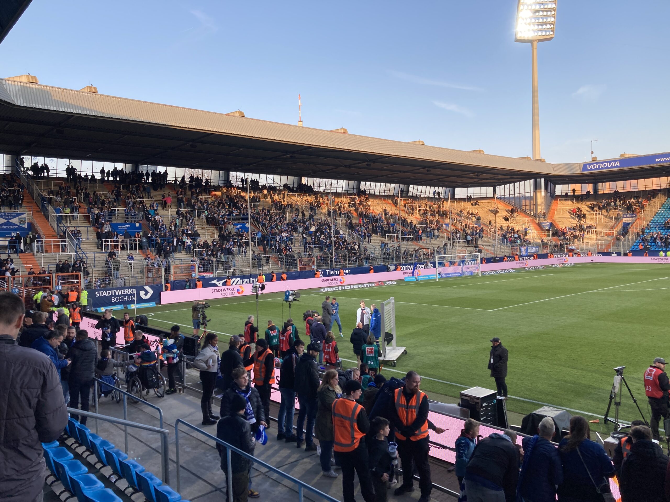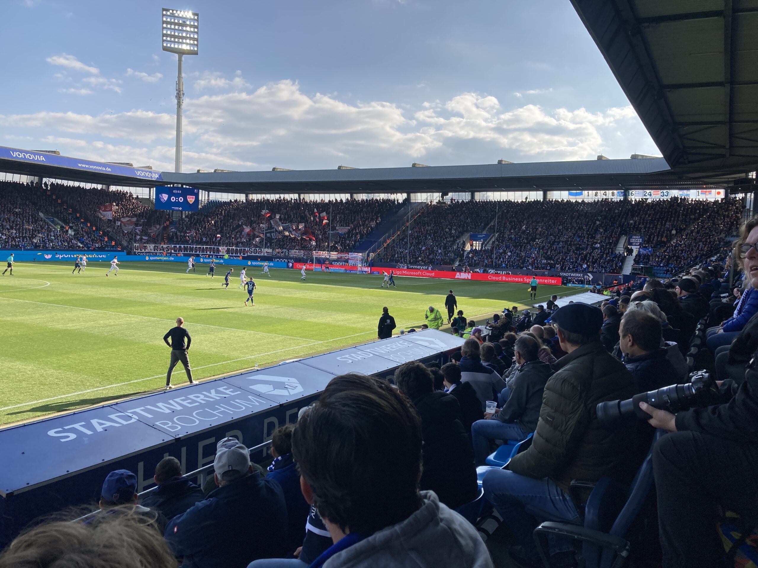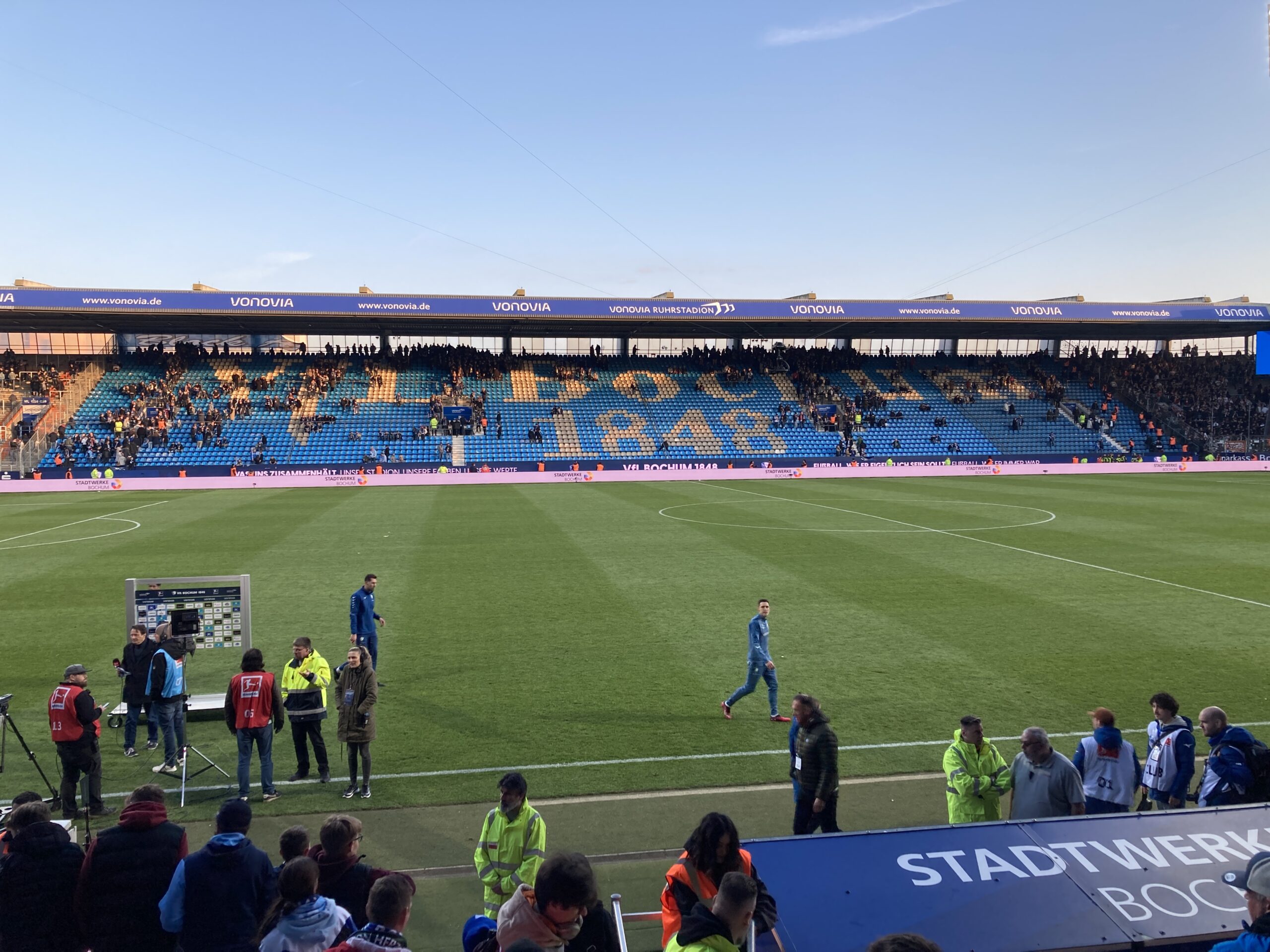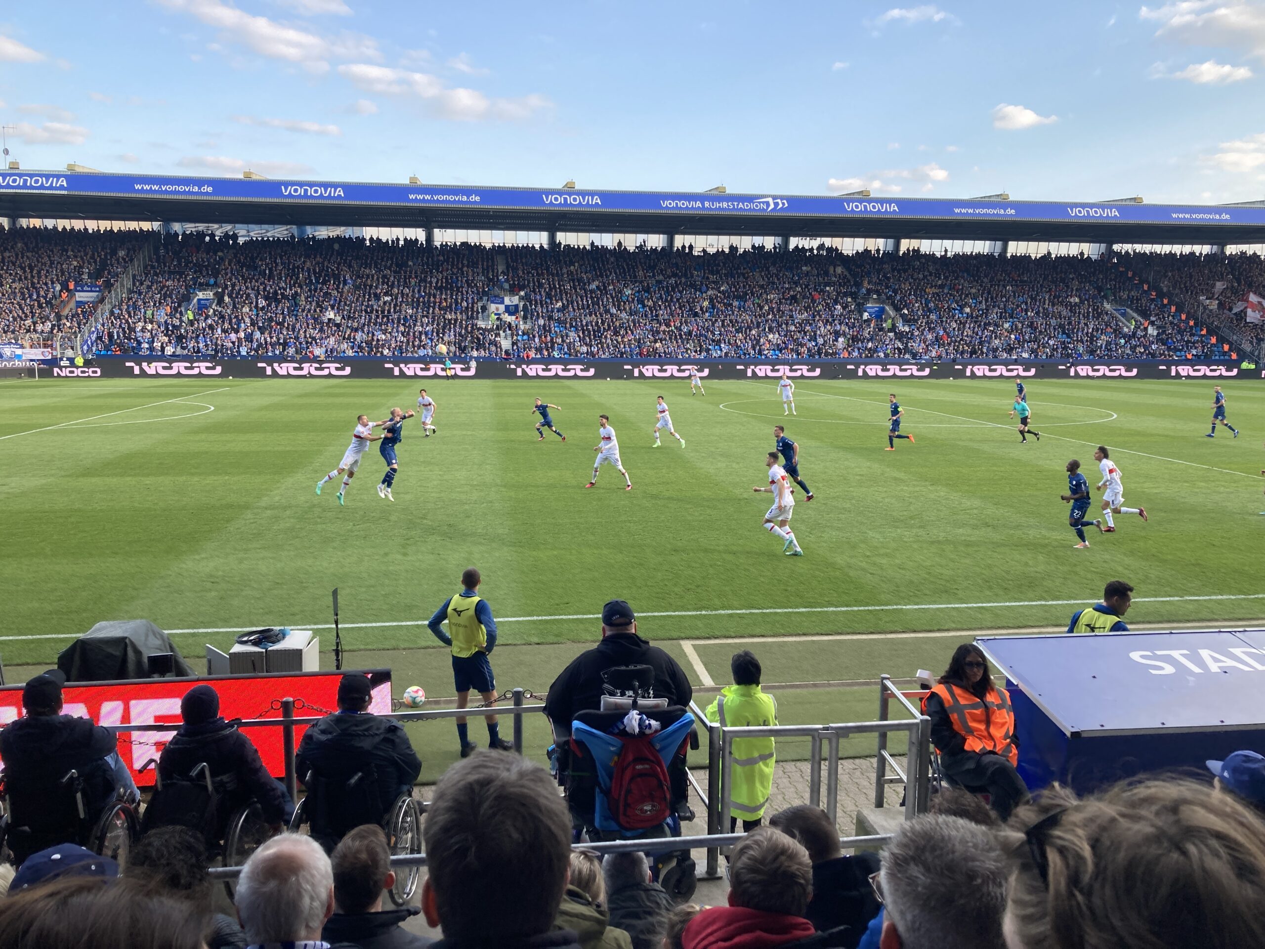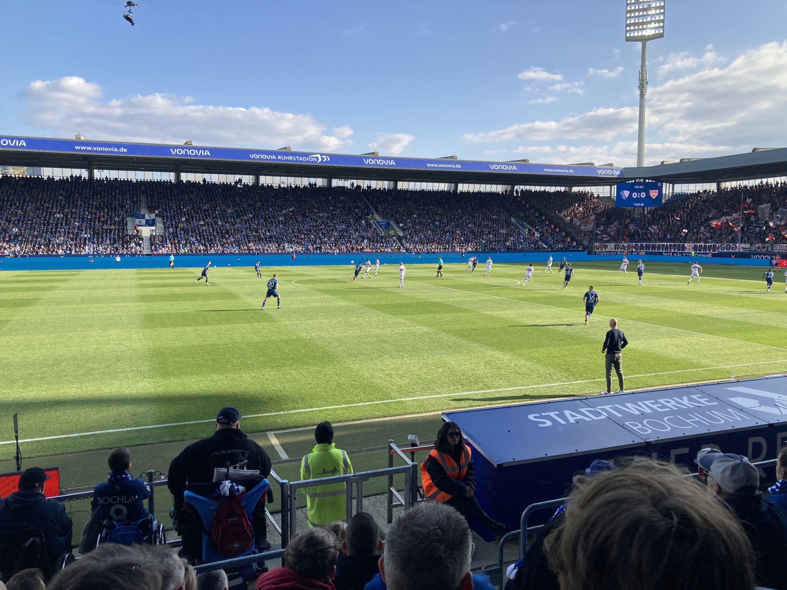 Kick Off! The Bochum fans are amazing so far! Stuttgart pretty impressive too! Germany is the place! Bochum playing a lot of long balls so far whereas Stuttgart are looking to work it through the thirds.