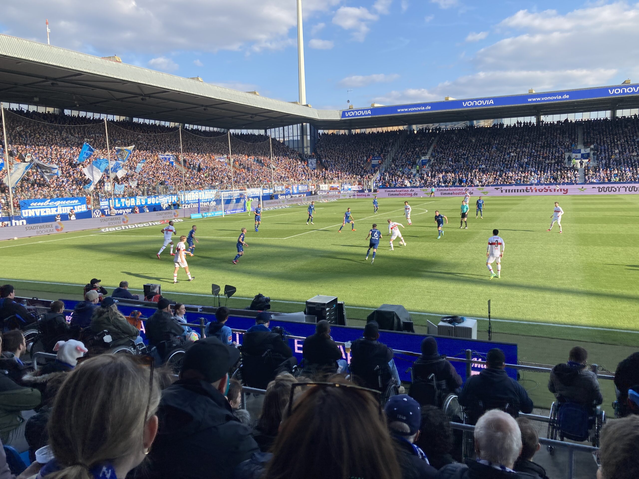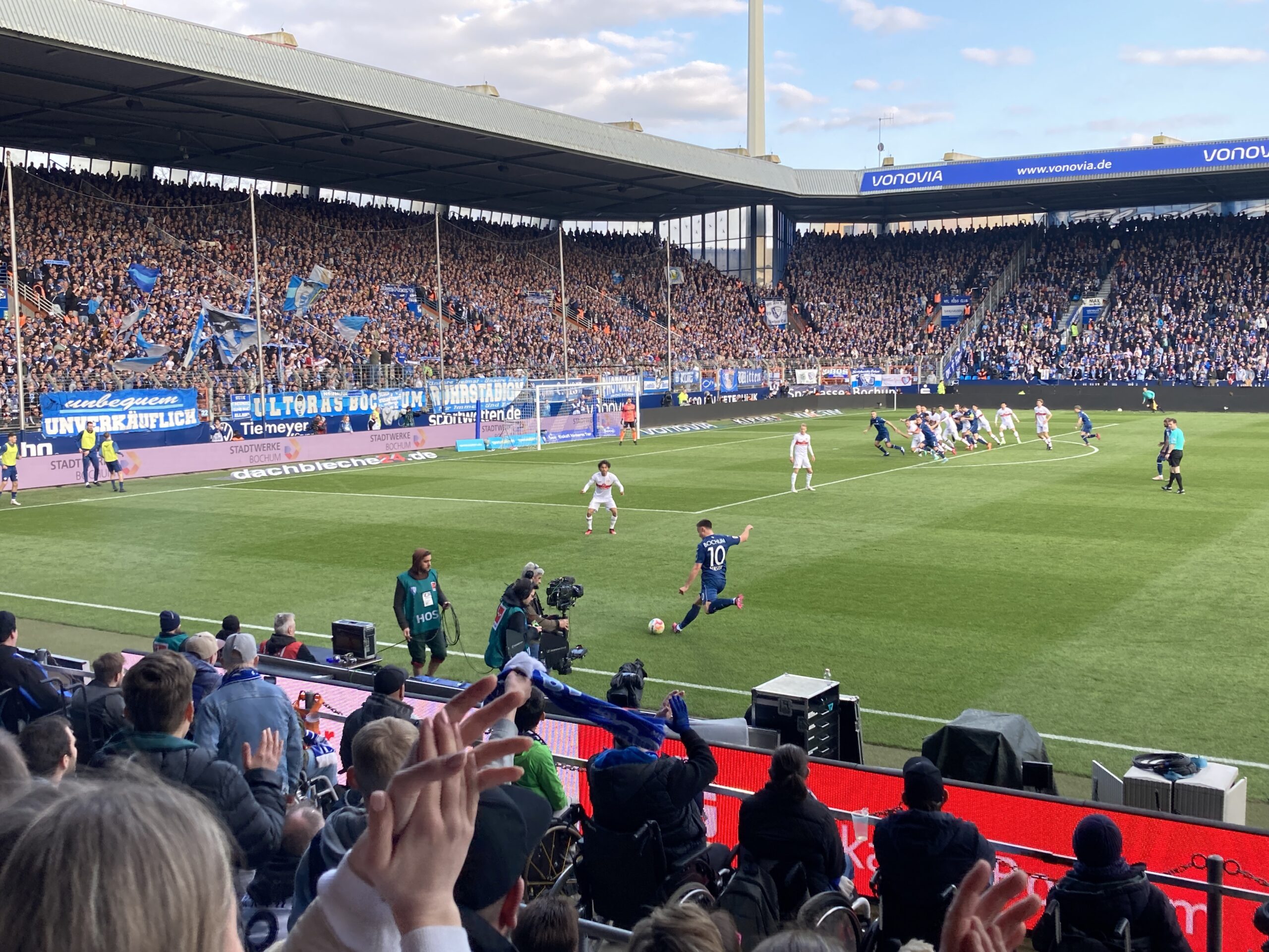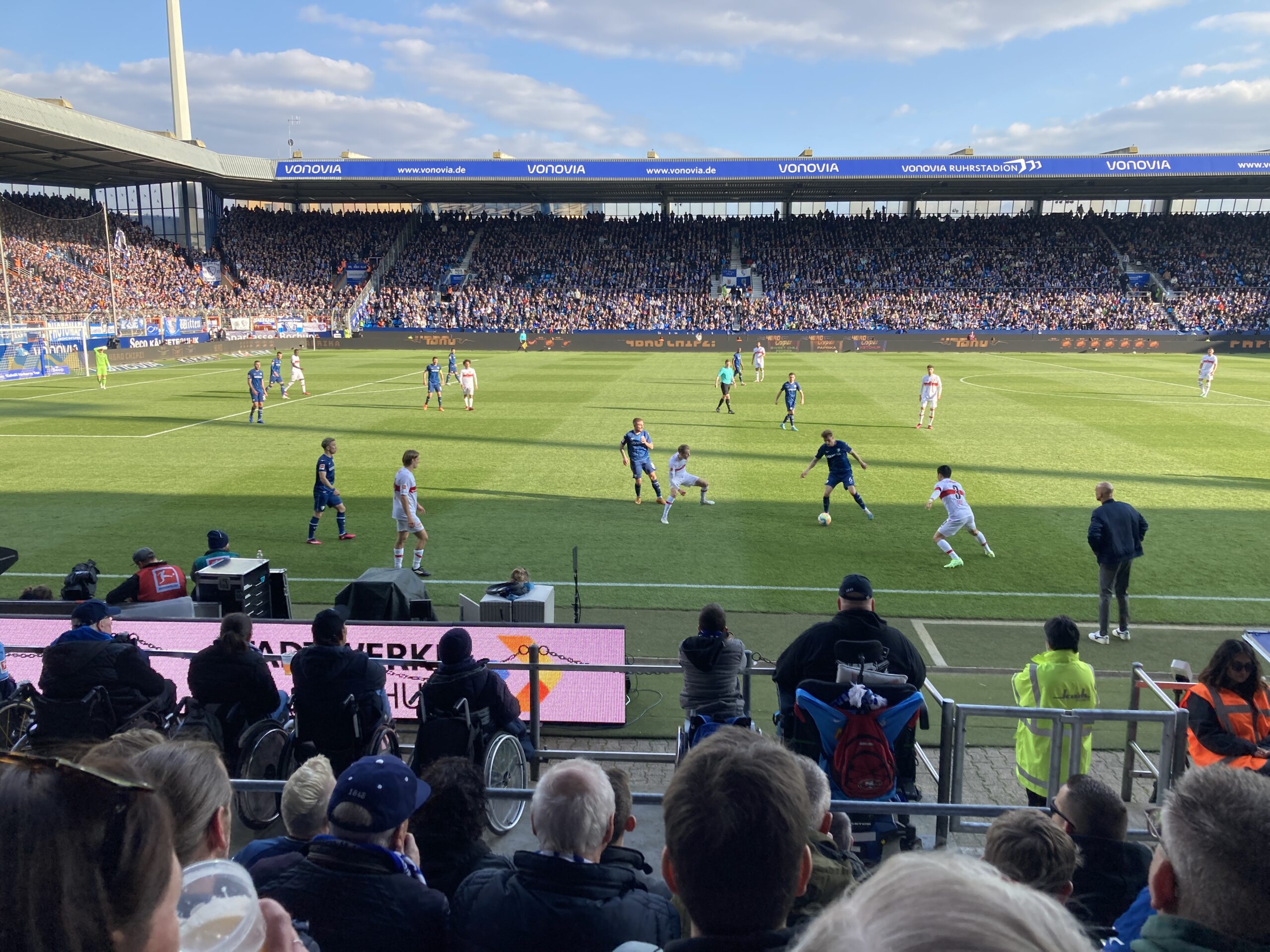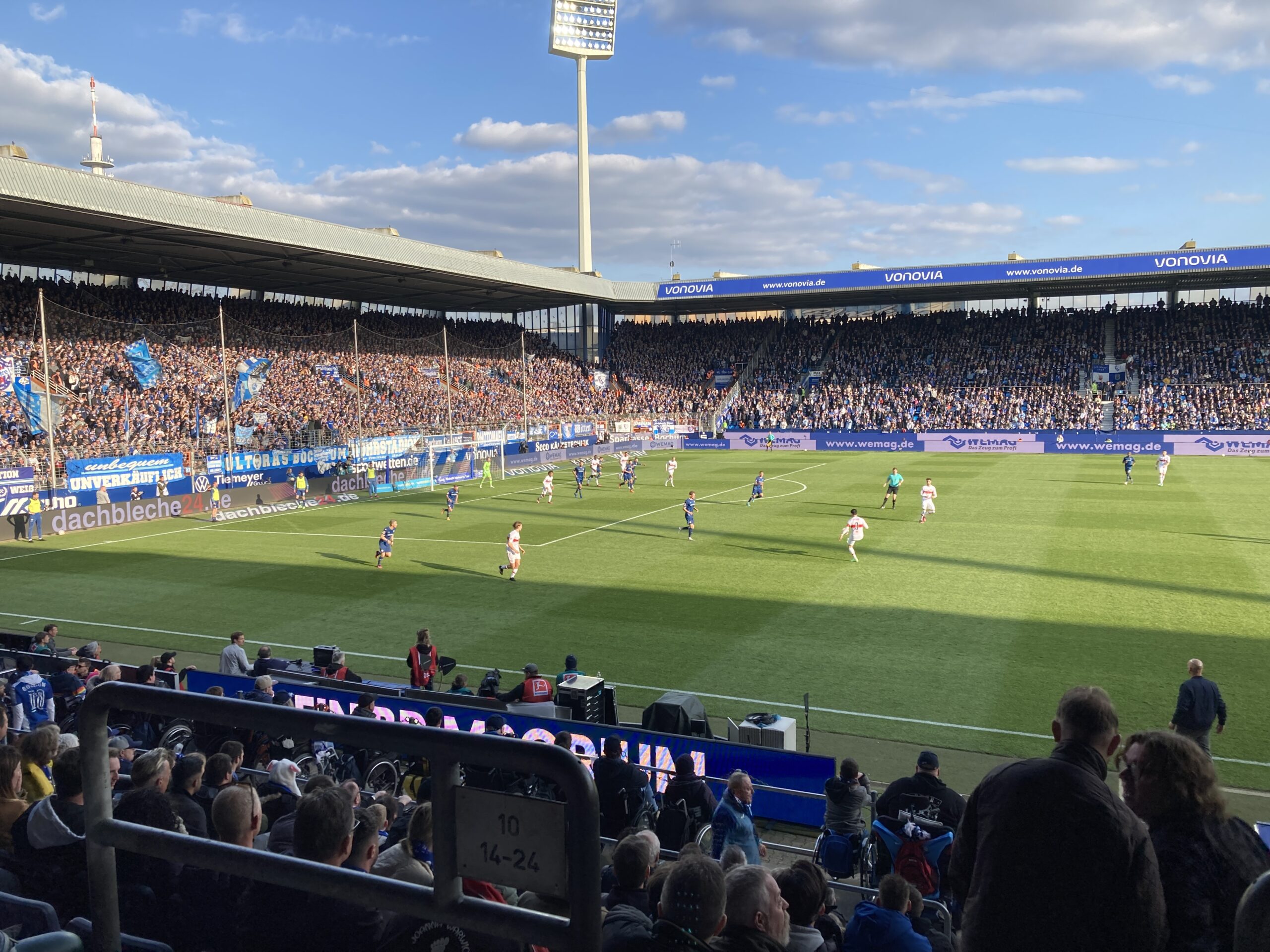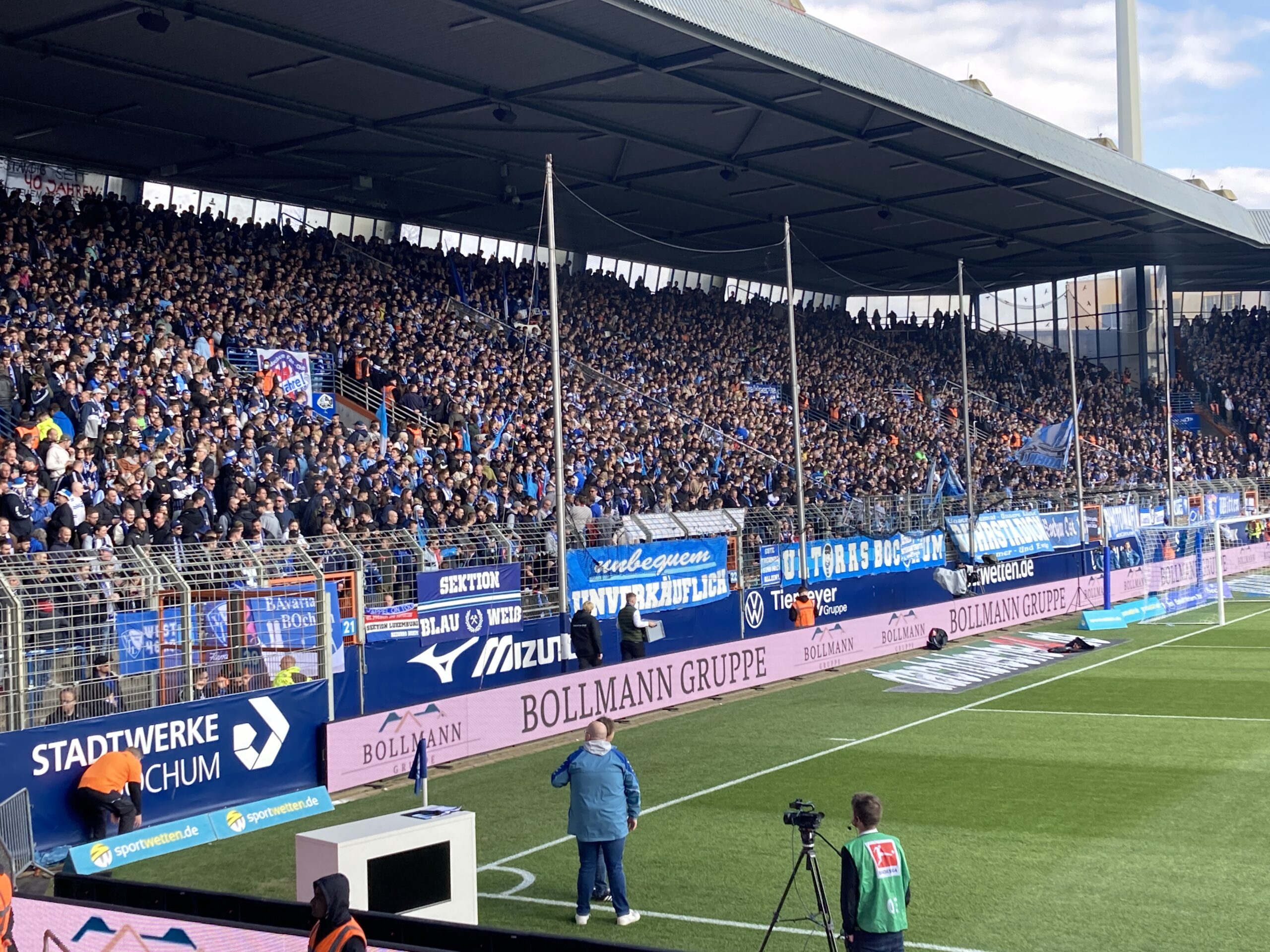 Kick Off! The Bochum fans are amazing so far! Stuttgart pretty impressive too! Germany is the place! Bochum playing a lot of long balls so far whereas Stuttgart are looking to work it through the thirds.