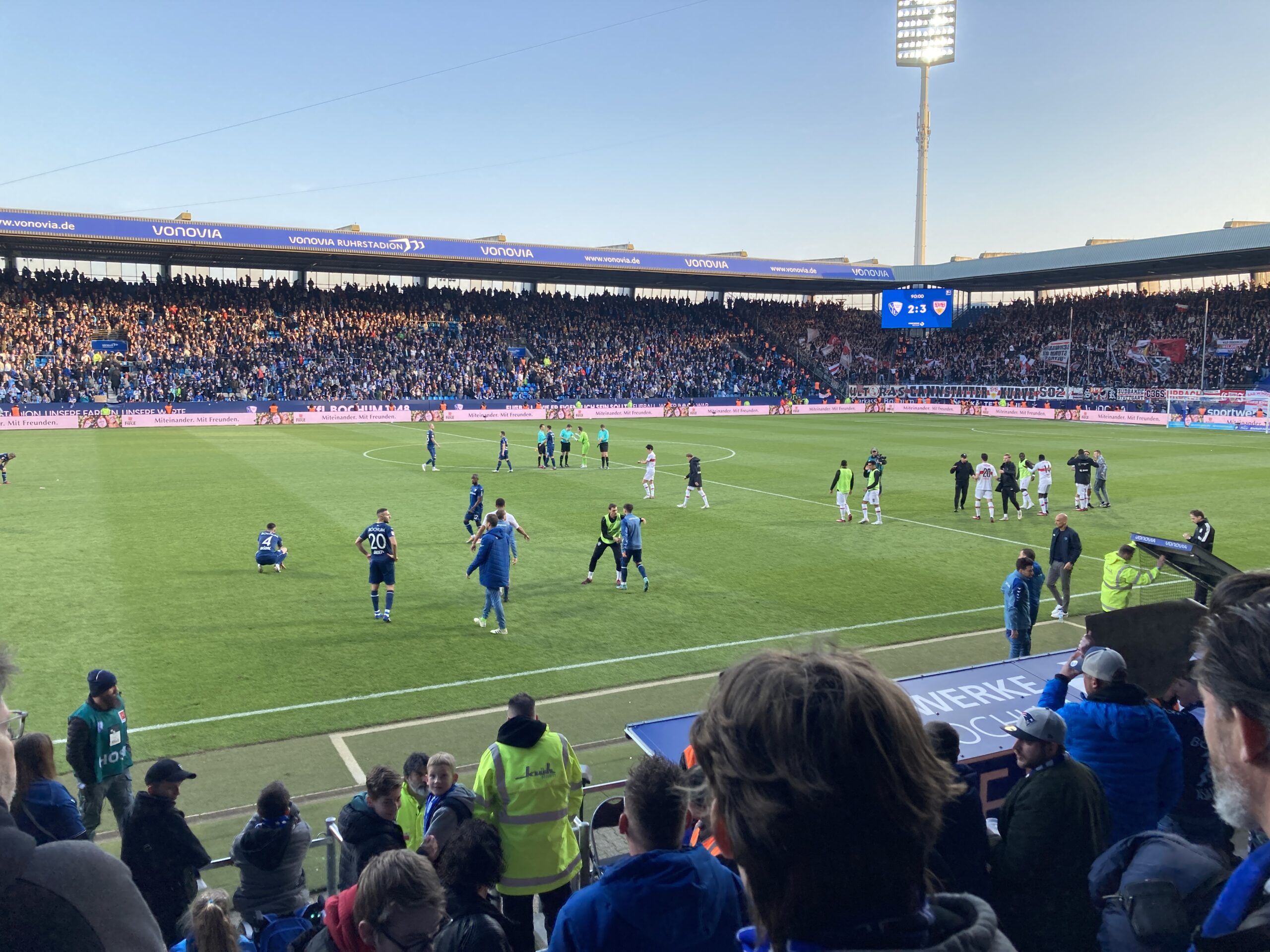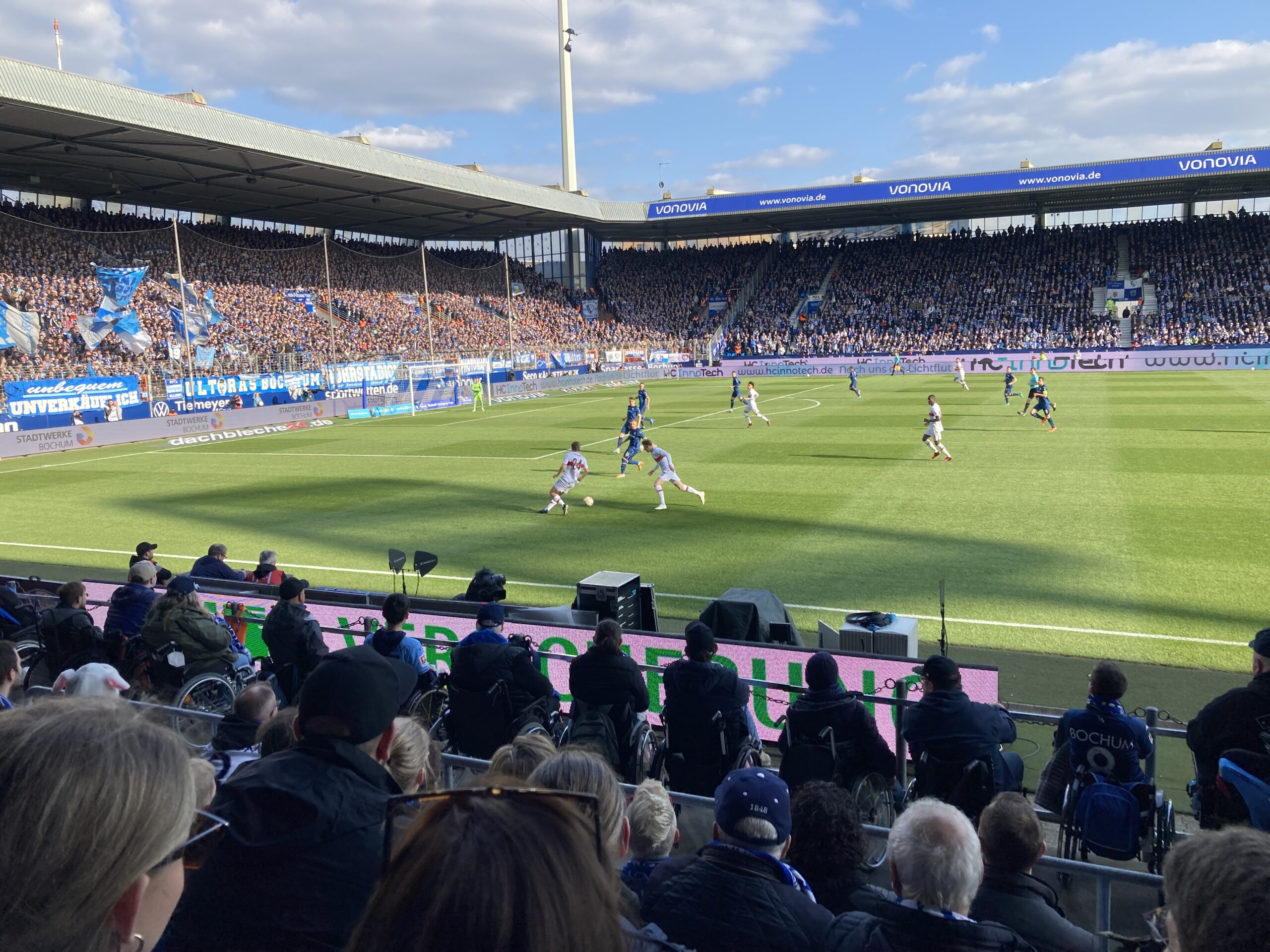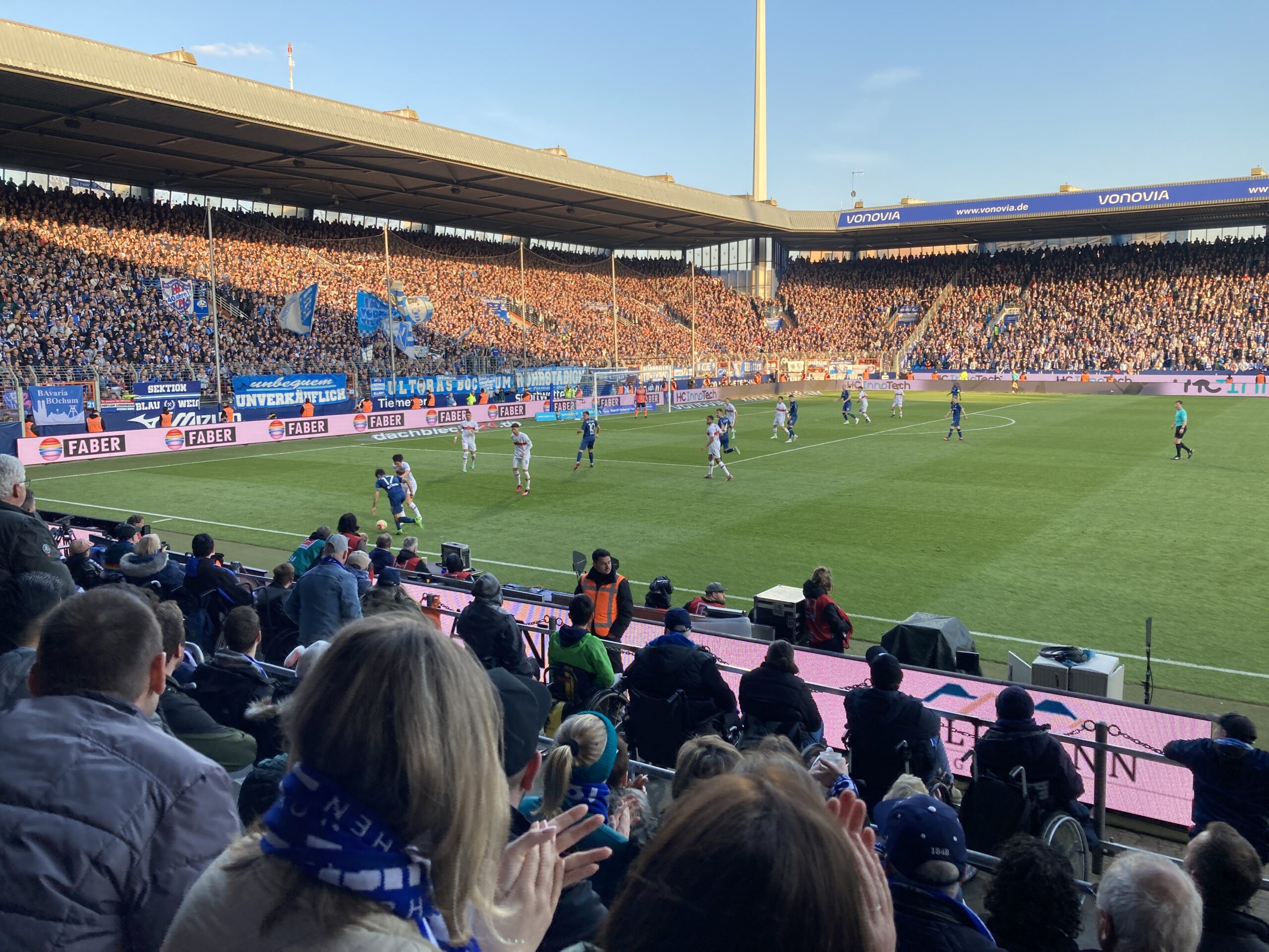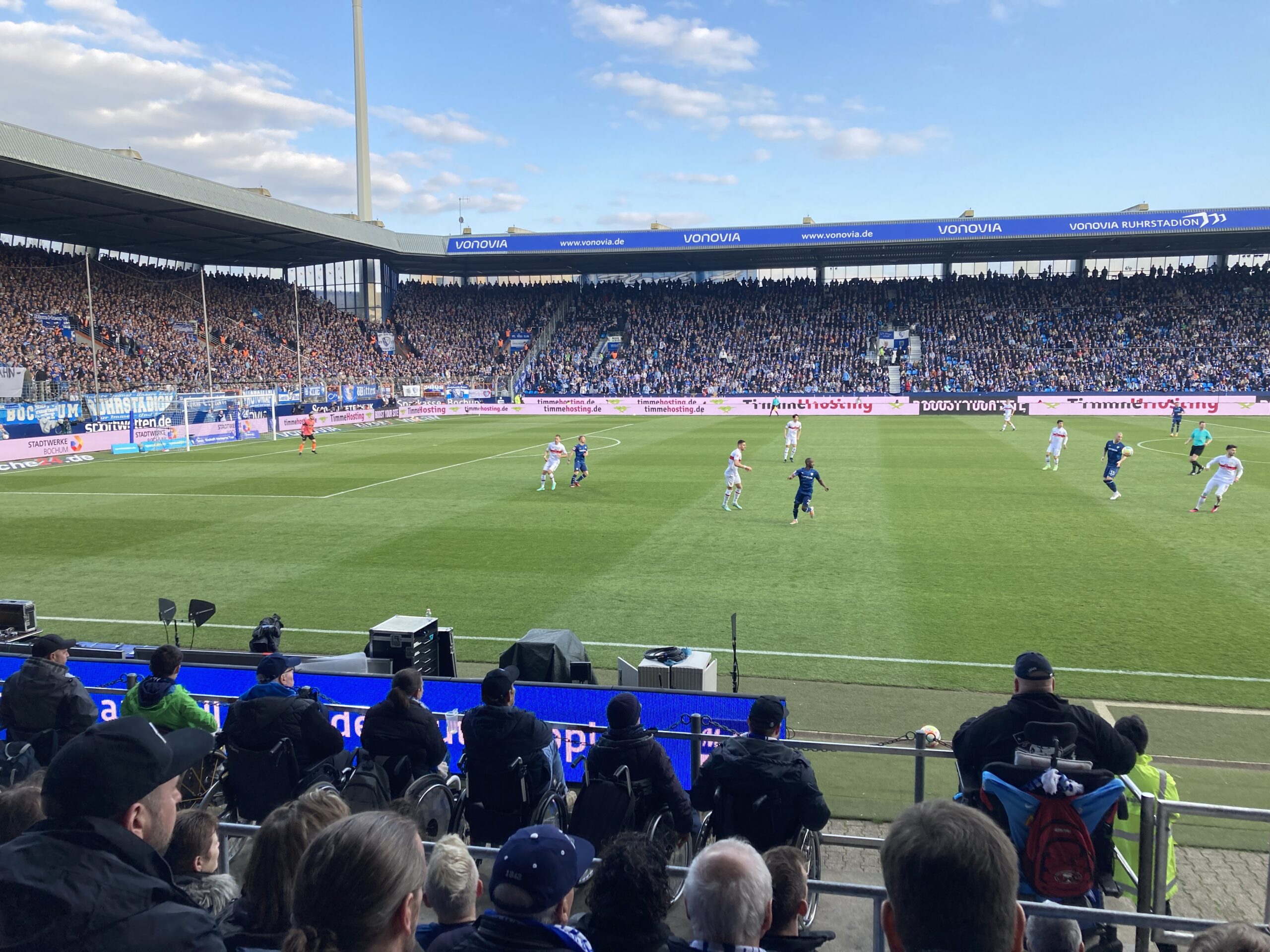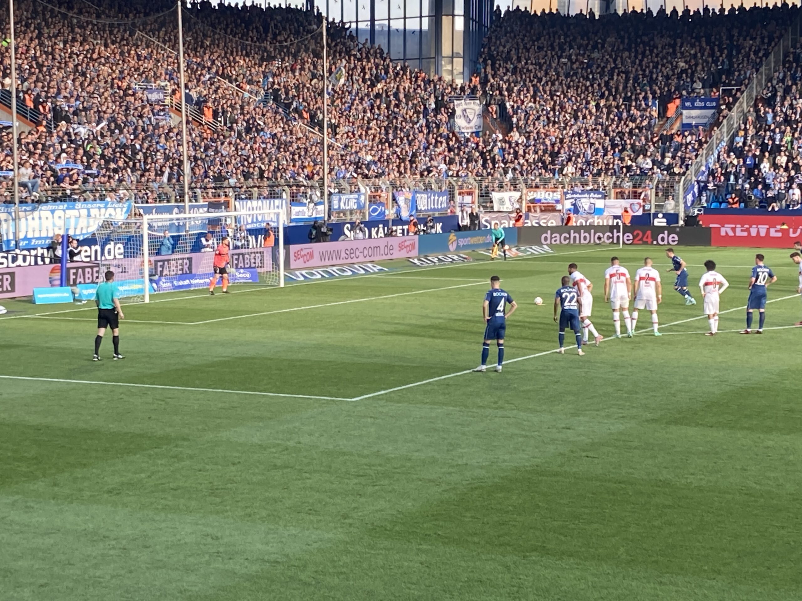 Kick Off! The Bochum fans are amazing so far! Stuttgart pretty impressive too! Germany is the place! Bochum playing a lot of long balls so far whereas Stuttgart are looking to work it through the thirds.