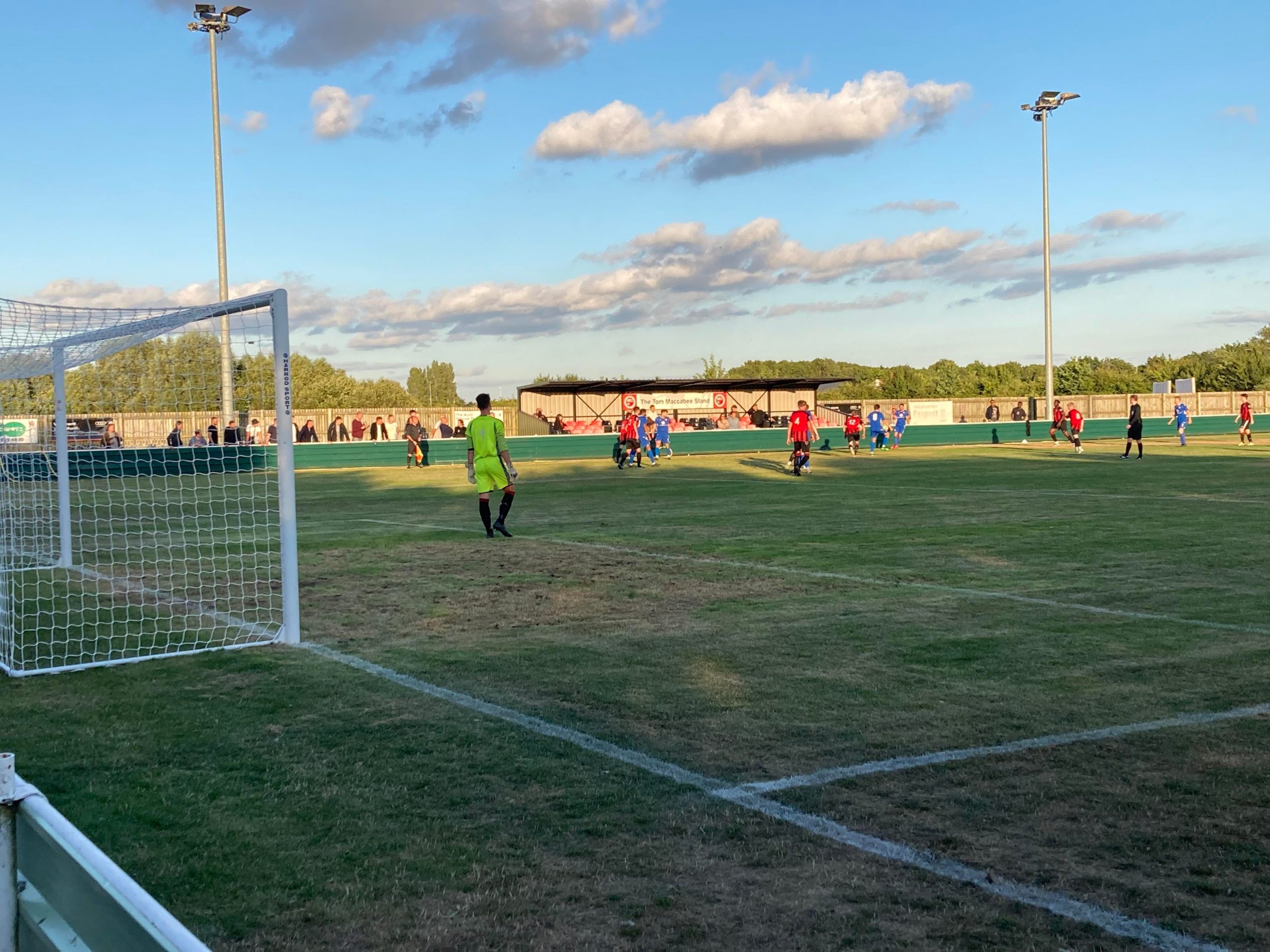 Newark are dominating the game now! More and more as the game goes on as well. Right on half time and they come forward again, it’s played across to Tom Slone who gets into the box and shoots… Keeper saves with his legs but Slone gets it back, he wins a corner, in it comes… West Bridgford get a head to it but Newark win it back, the shot comes in from just outside the box… Over! Newark lead by 2 at half time.