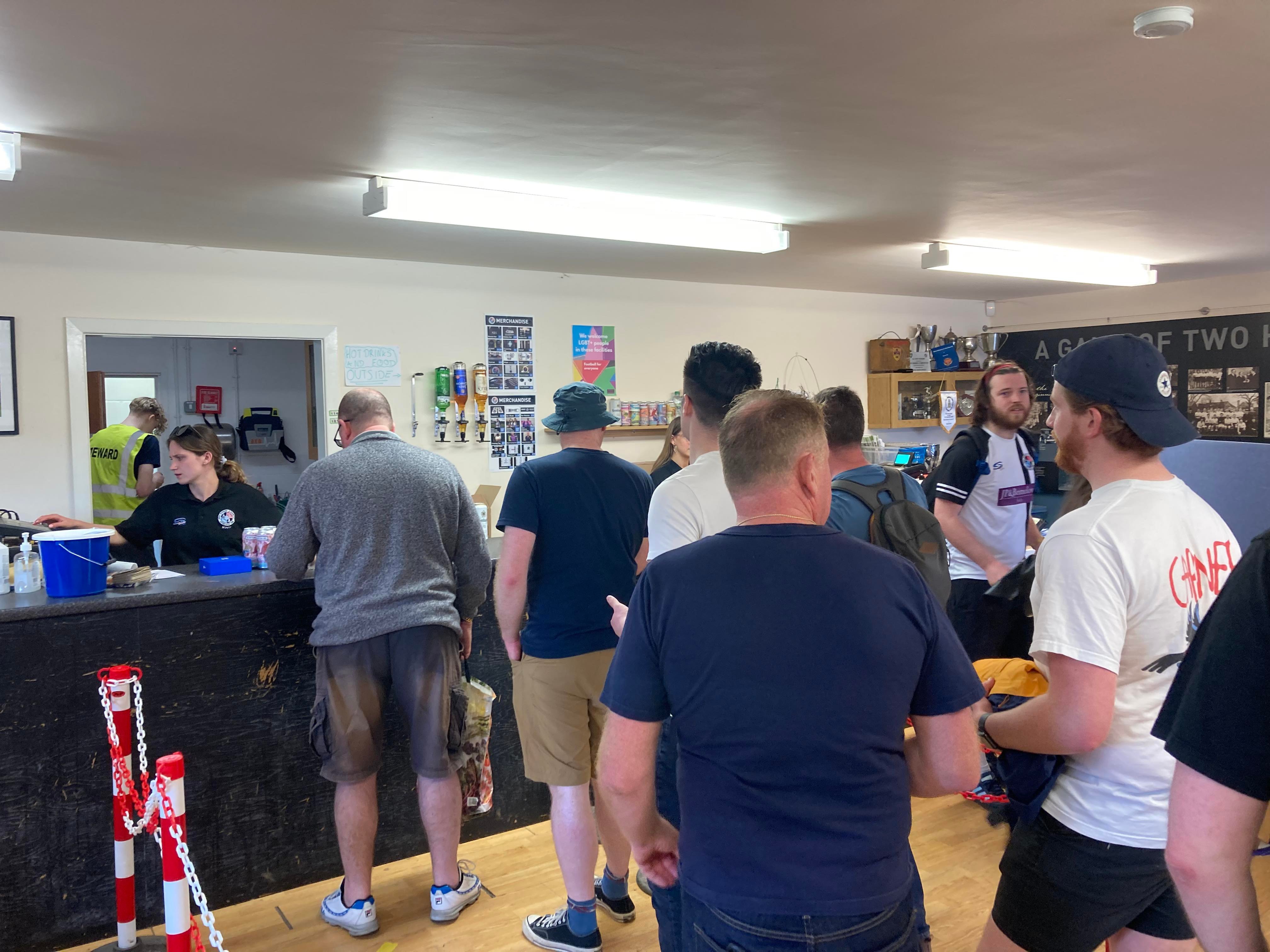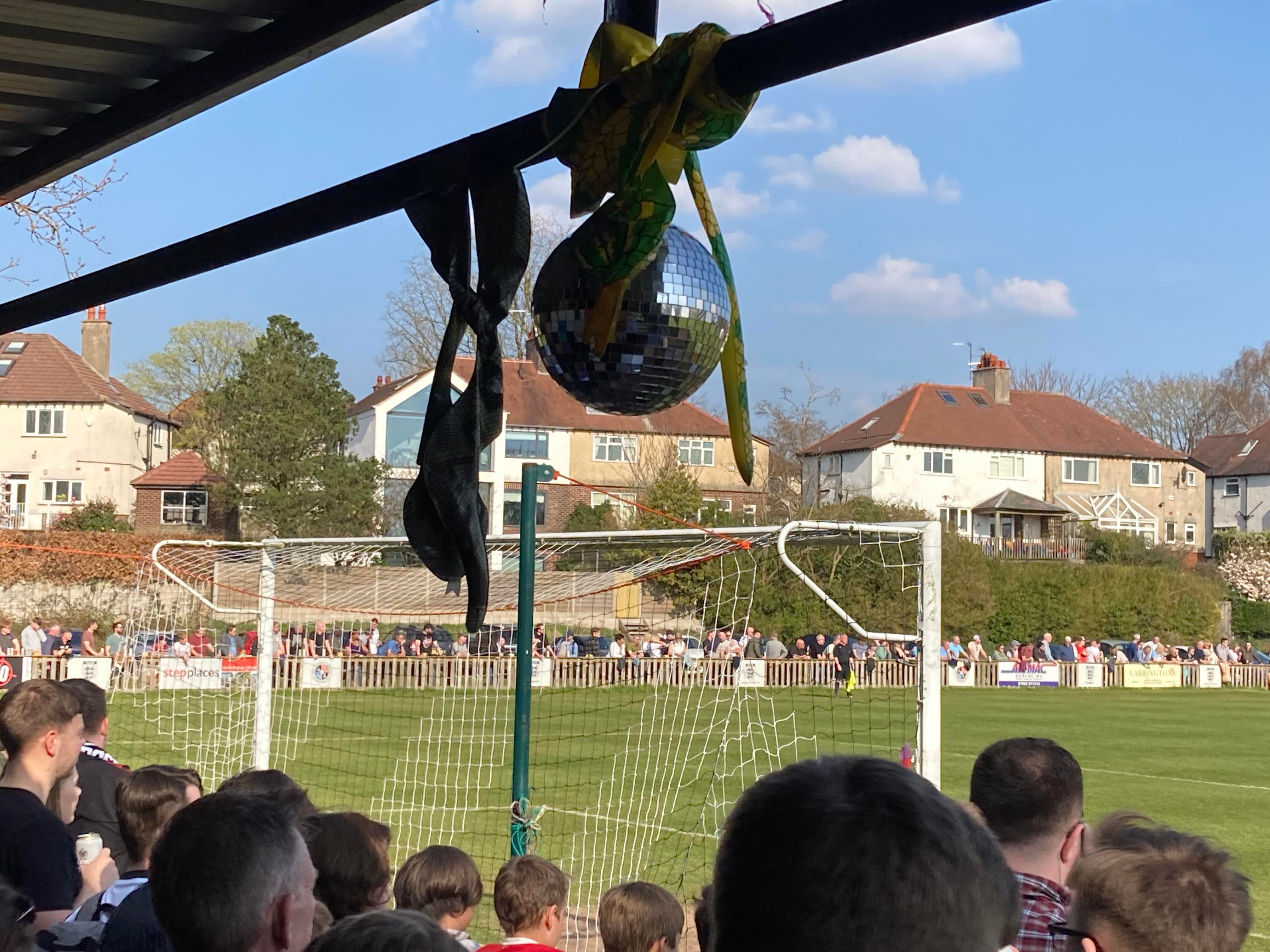 - The Ground: 6.5/10 – There’s not too much here but they have certainly made the most of what they have got! The shed end is full of stickers and flags and the banking on the side makes for a good view! They’ve even got a disco ball in the shed end!! I’d say it’s a good summer ground! I wouldn’t like to be coming here on a cold day…
