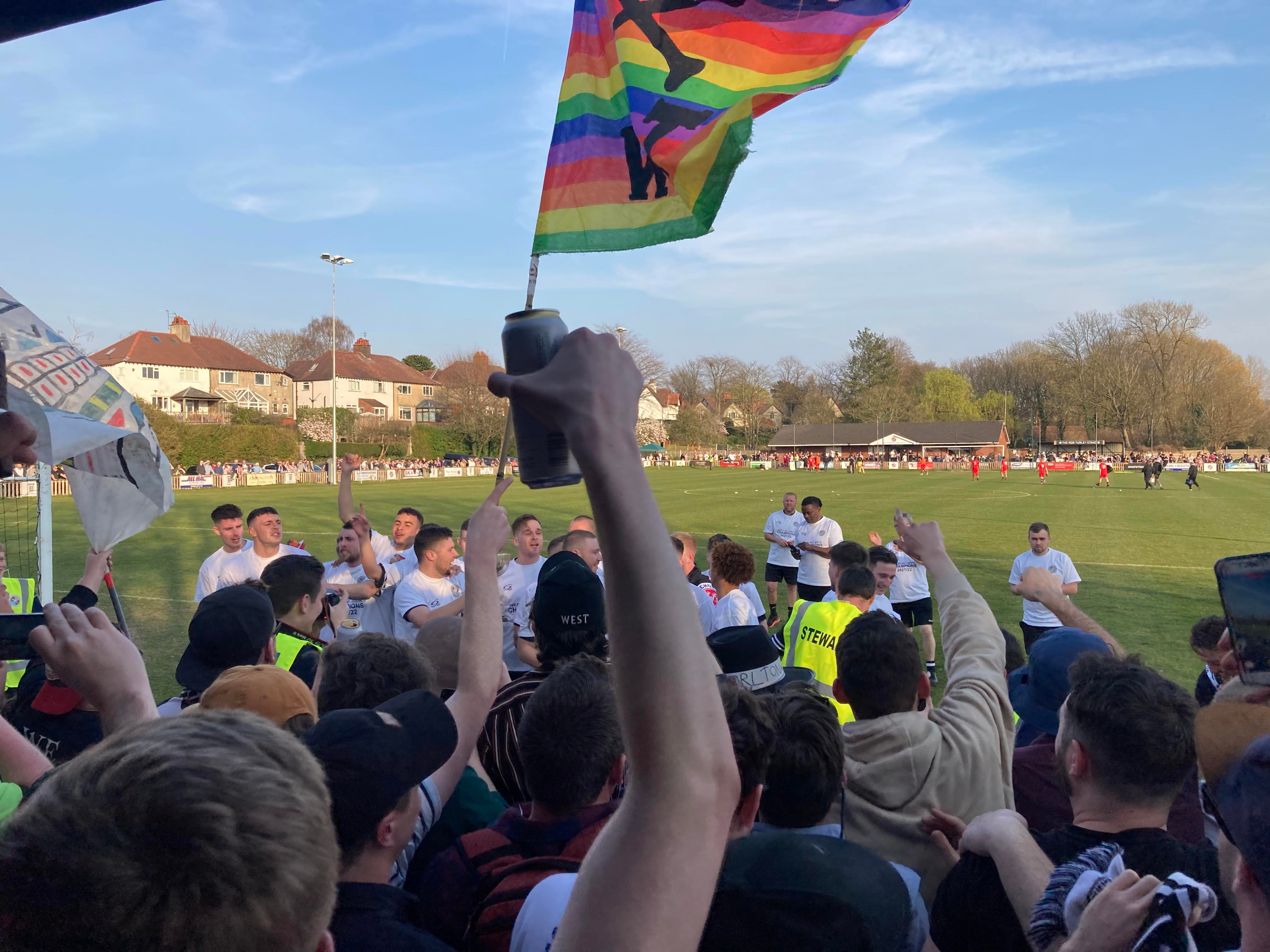 Out come the Champions to a guard of honour from Alsager! “Don’t you know pump it up! The West are going up!” And “Championes! Championes! Ole Ole Ole!” A guard of honour from the West faithful as well!!