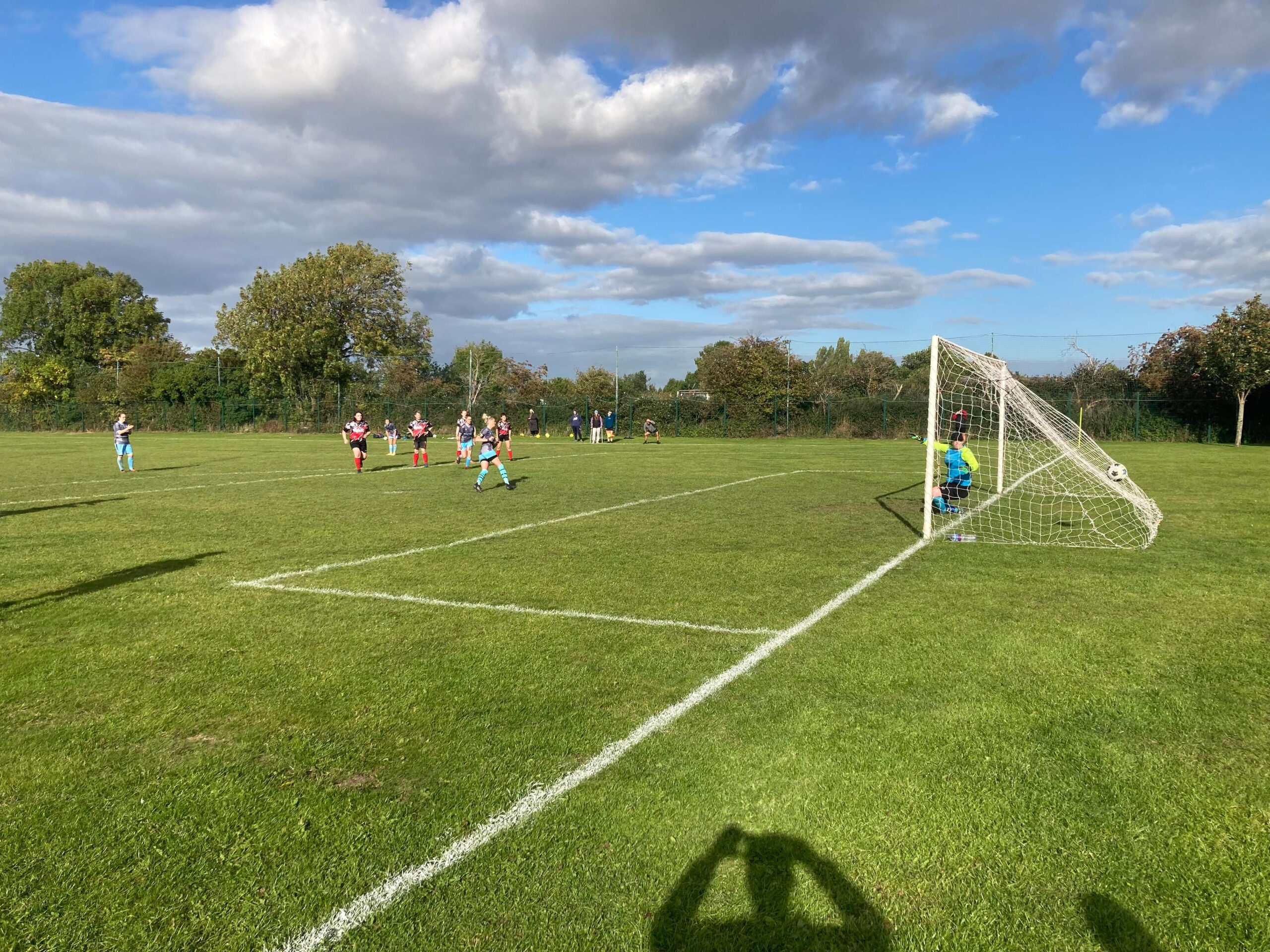1 minute later and here come West Yorkshire bomb down the right wing, it’s played across to number 9, she controls and toe pokes it towards goal… OH IT’S GONE IN… 2 in 2 becomes 3 in 3 minutes! It hits the keeper’s shins and rolls in… Oh dear!! 3-0!
