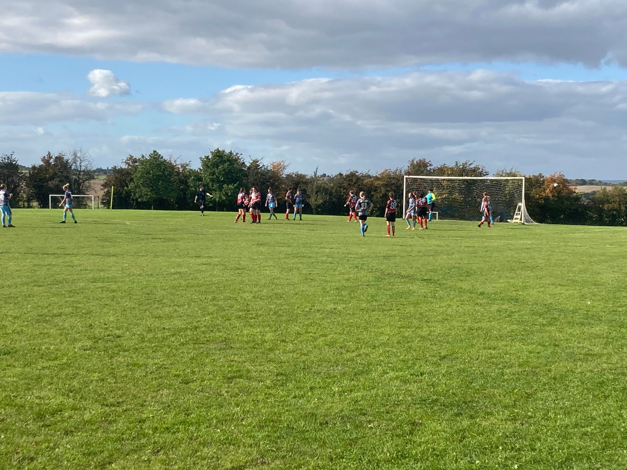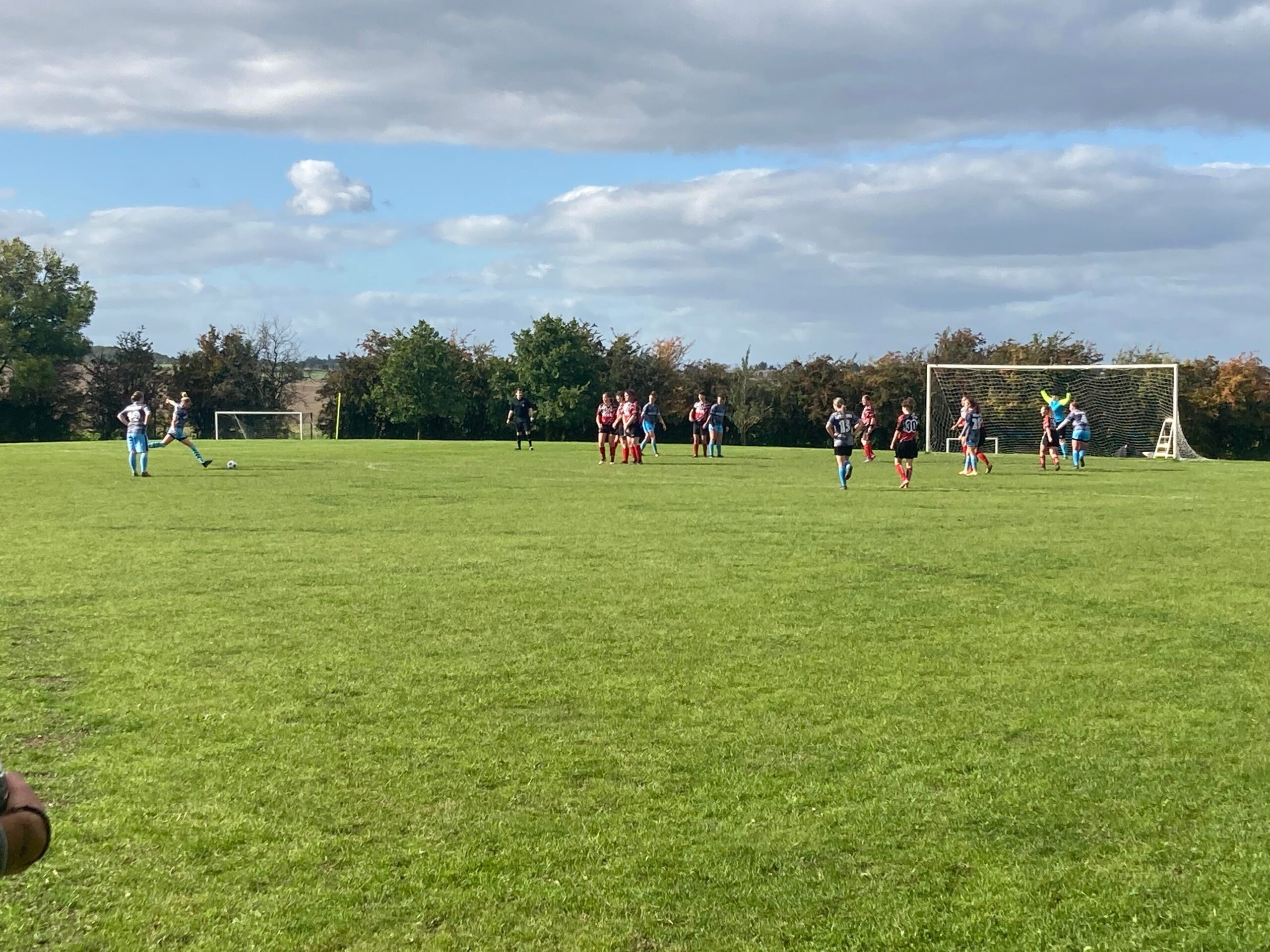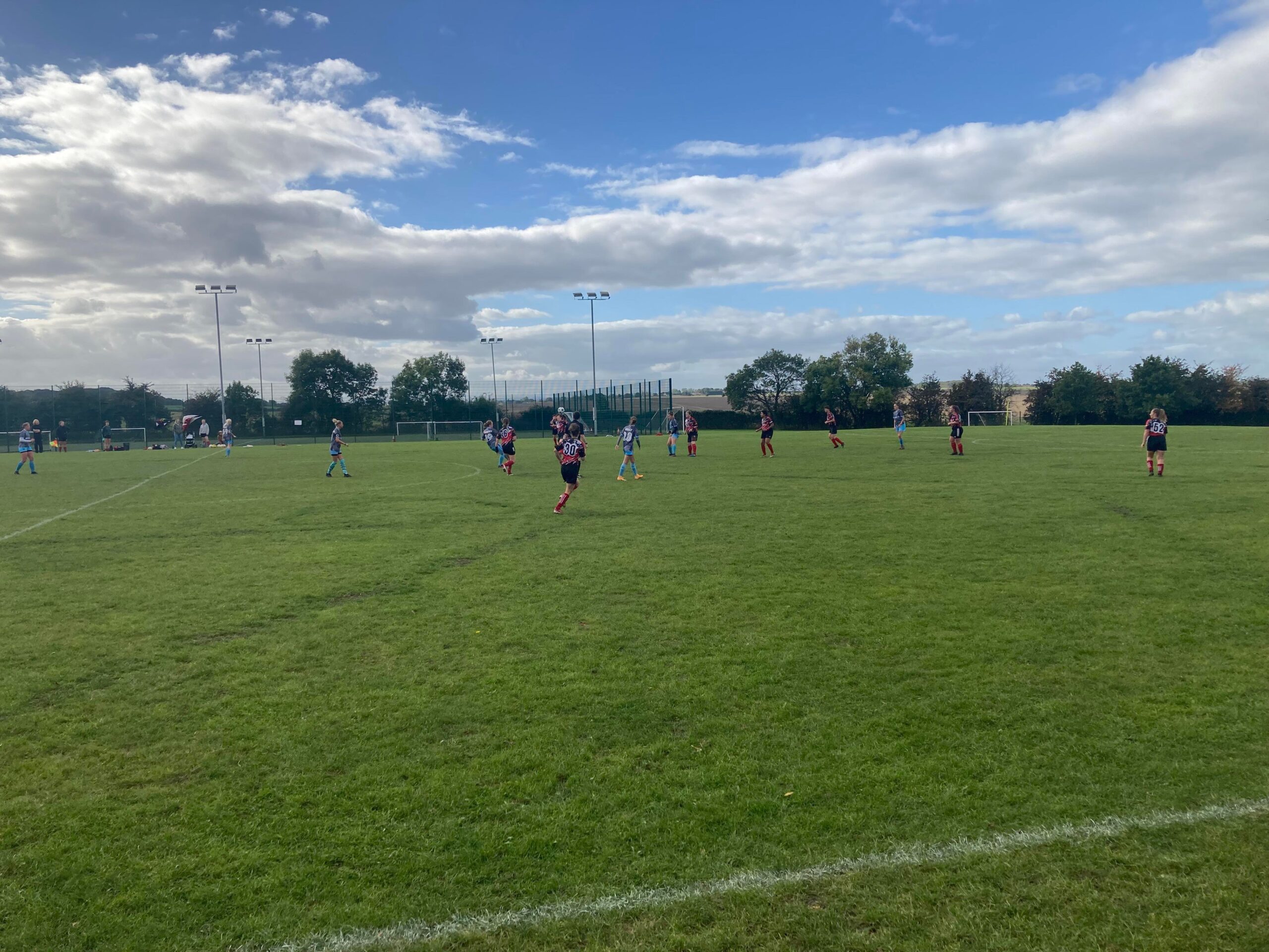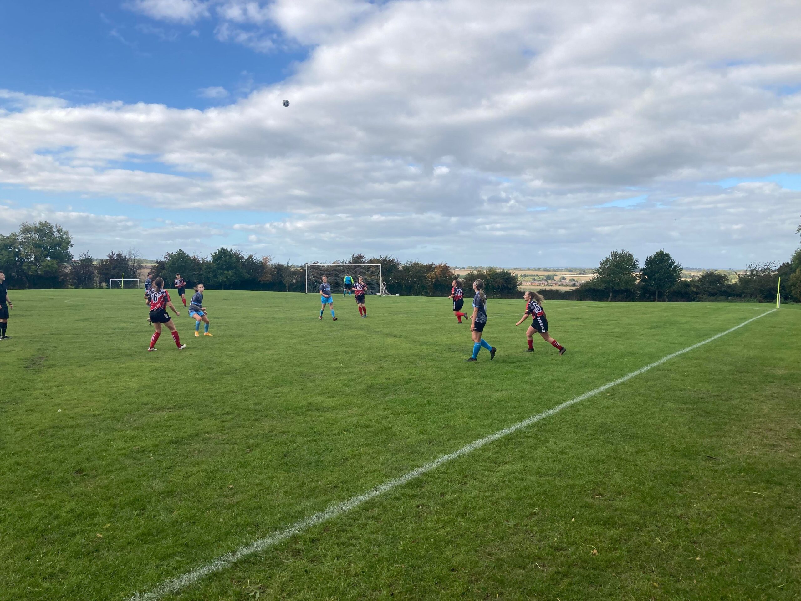Kick Off! 7 minutes in and West Yorkshire play down the right, it’s played across to number 9 who goes for goal, it’s a bobbled shot… But the keeper catches it. She lumps it forward, West Yorkshire intercept and play forward again, they get into the box with number 9, she plays in number 14… It must be… No! The keeper saves the shot! That should’ve been 1-0 there!