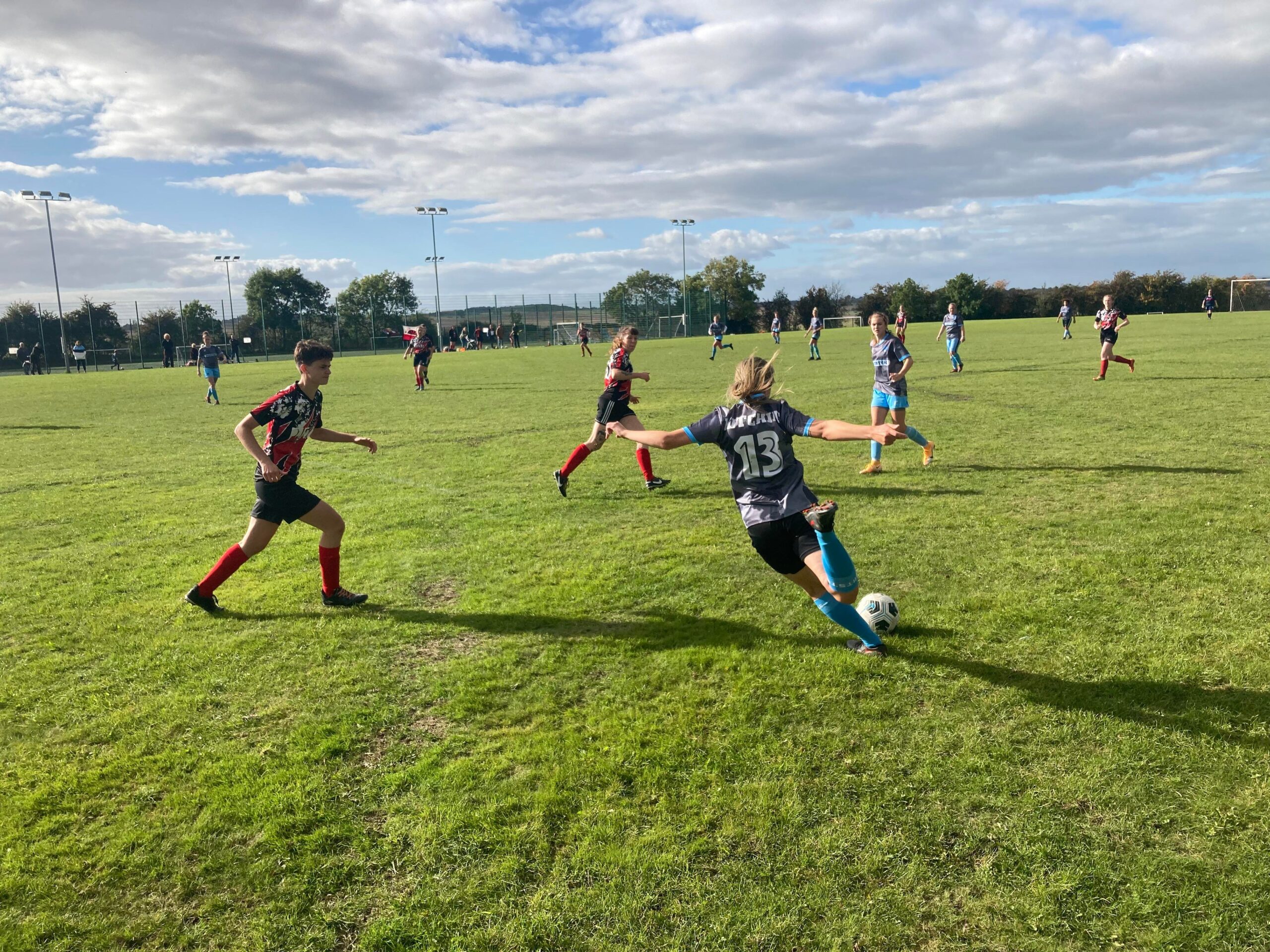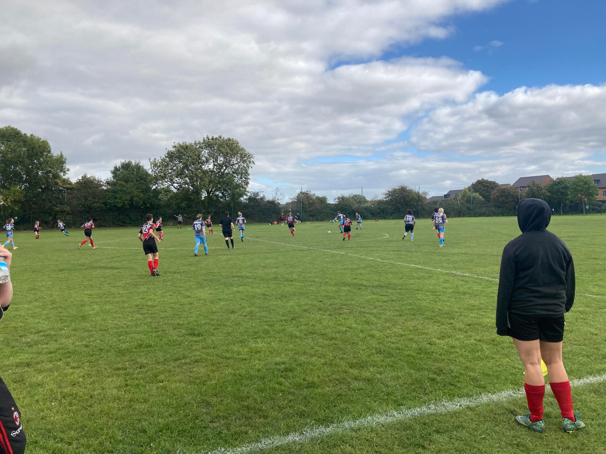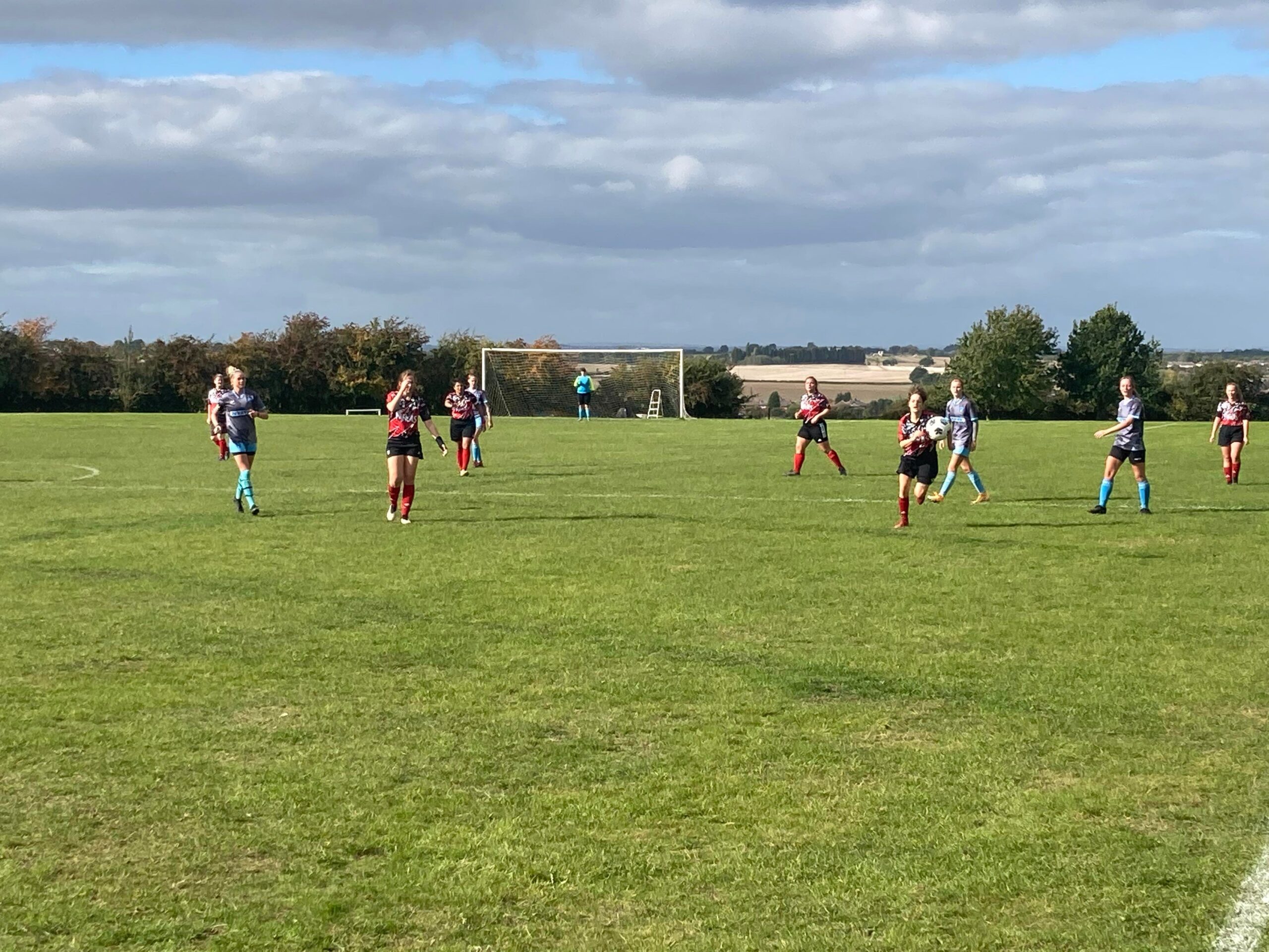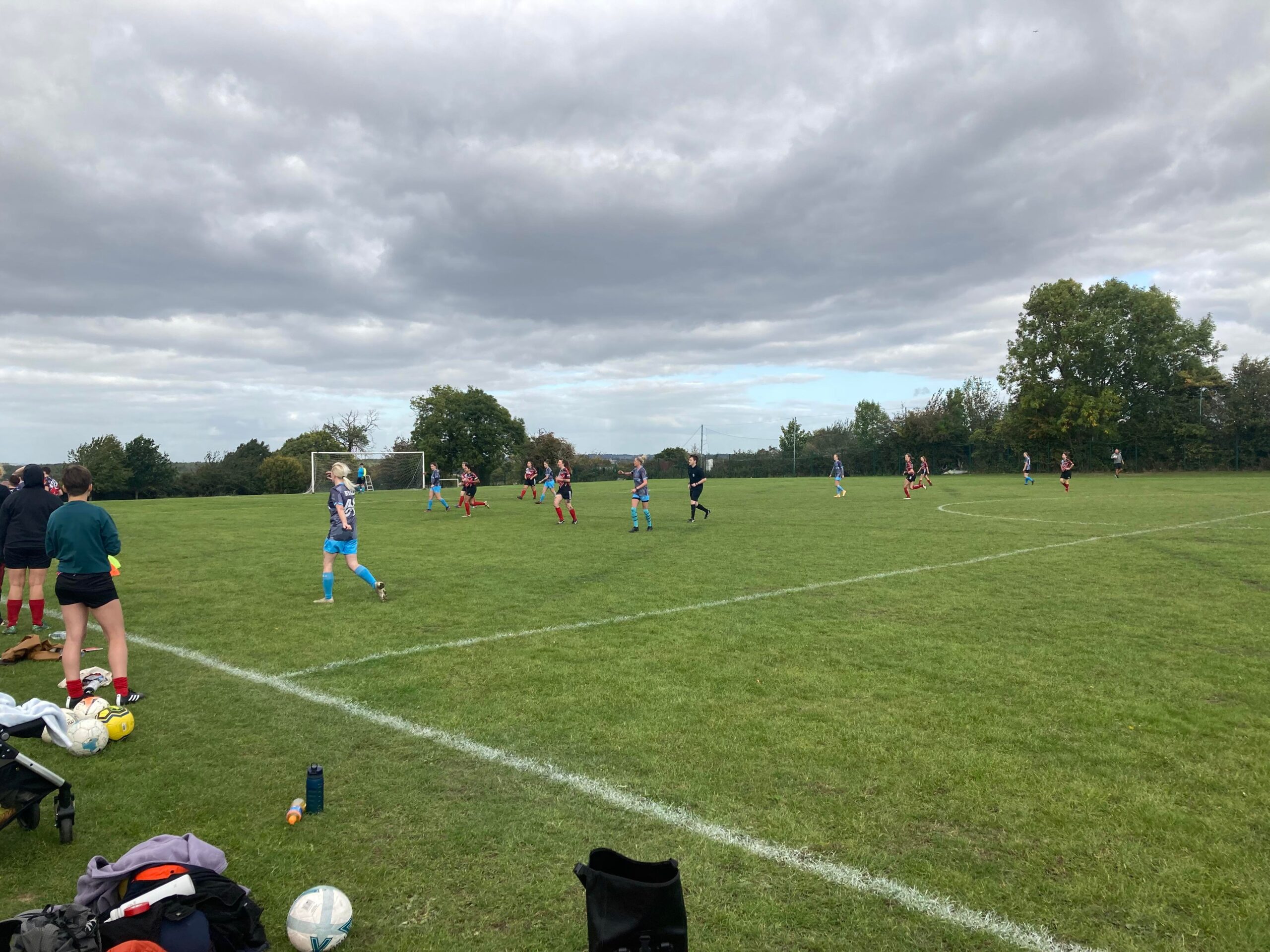 Kick Off! 7 minutes in and West Yorkshire play down the right, it’s played across to number 9 who goes for goal, it’s a bobbled shot… But the keeper catches it. She lumps it forward, West Yorkshire intercept and play forward again, they get into the box with number 9, she plays in number 14… It must be… No! The keeper saves the shot! That should’ve been 1-0 there!