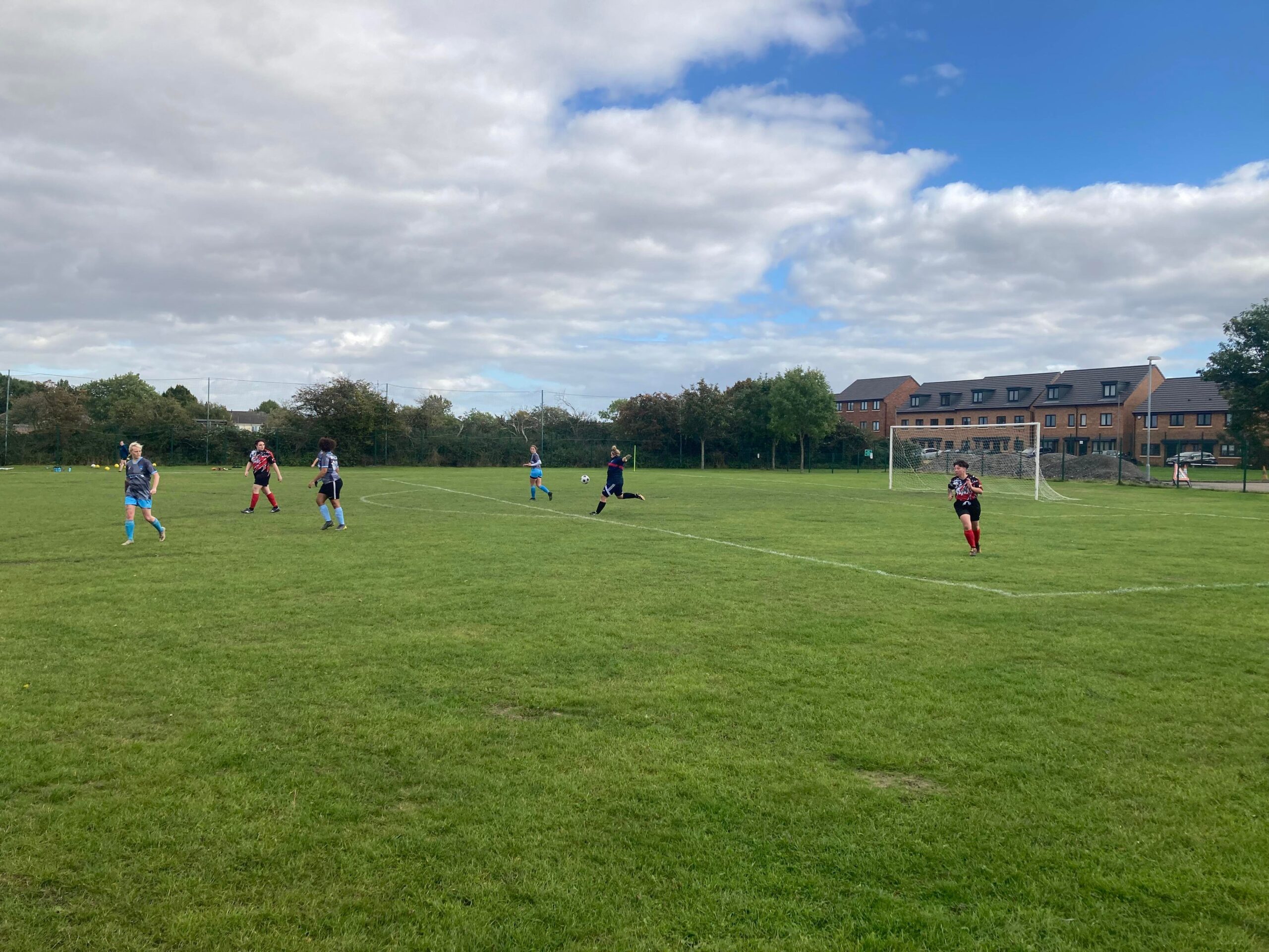 The Sunday doubles continue and now me and the Merry Miller make the short journey from Thurnscoe over the West Yorkshire border into Hemsworth with 45 minutes to go until kick off. A quick walk and one meal deal later and here we are back at the ground with the players just finishing their warm ups. Out they come for kick off and one minute of silence later, we are ready to go! West Yorkshire Ladies vs Republica!