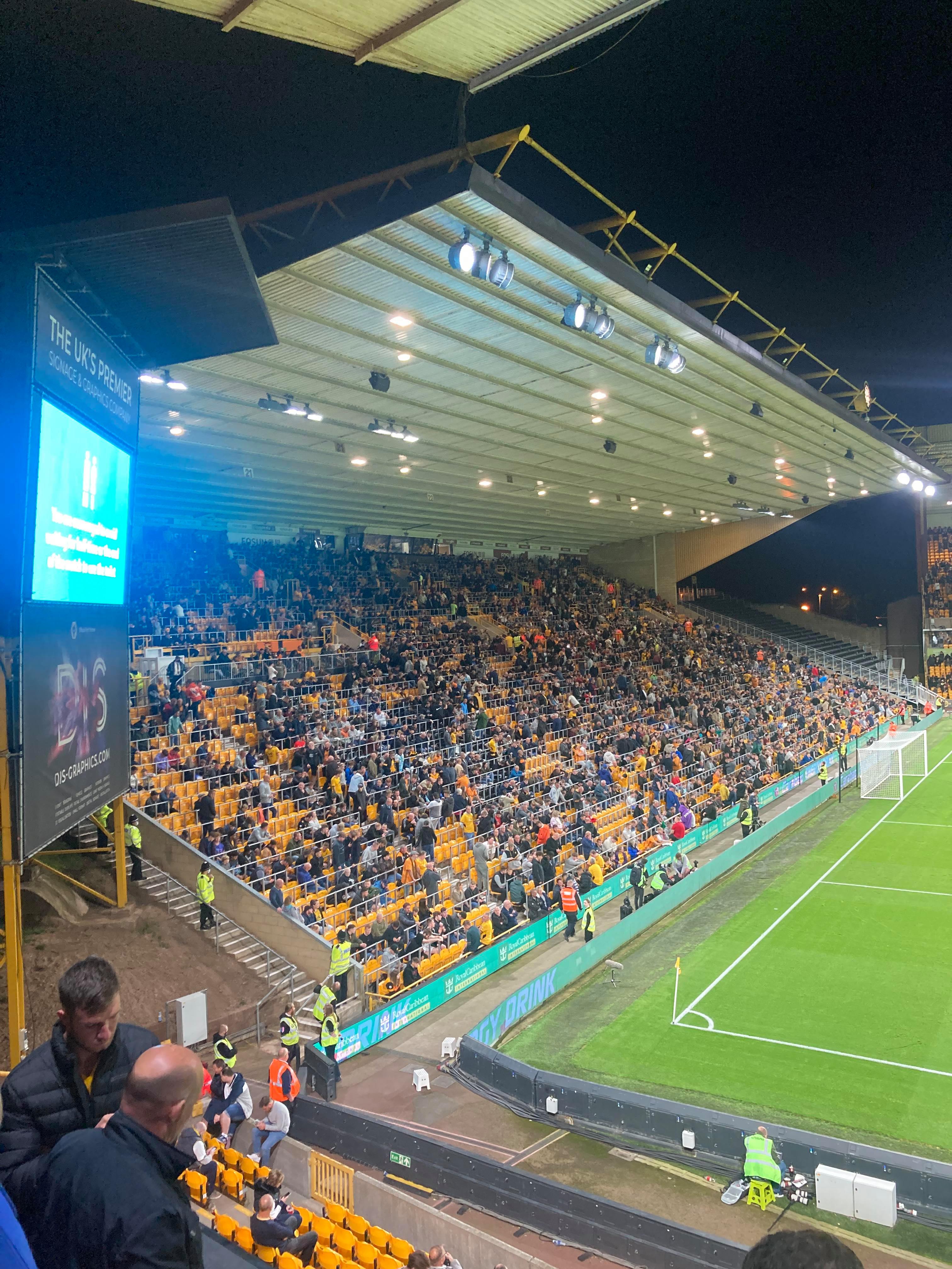 - Atmosphere: 8/10 – Fantastic from both sets of fans but the Wolves fans I thought were the better on the night! Especially when that second goal went in!!
